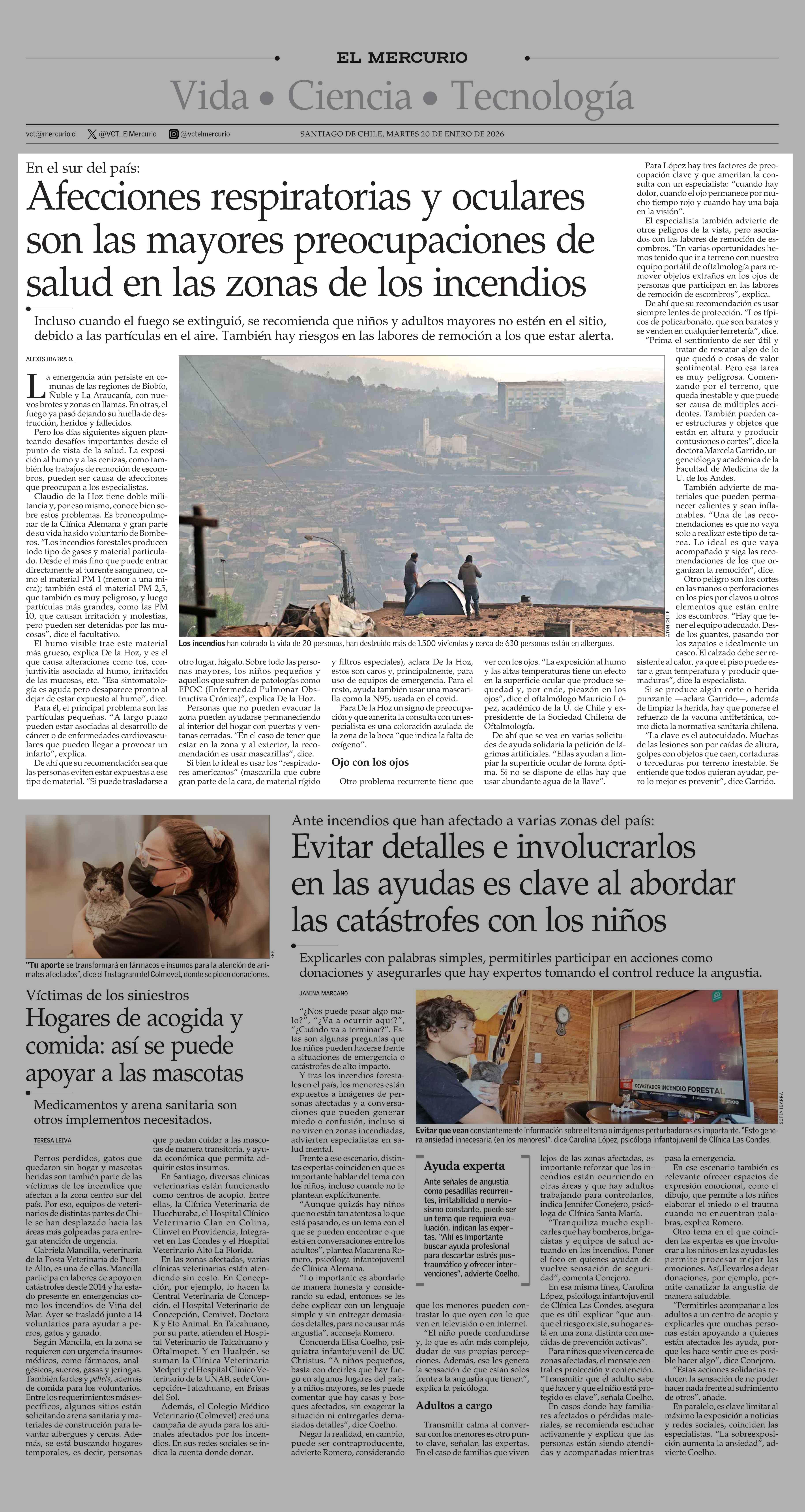 Título: Afecciones respiratorias y oculares son las mayores preocupaciones de salud en las zonas de los incendios