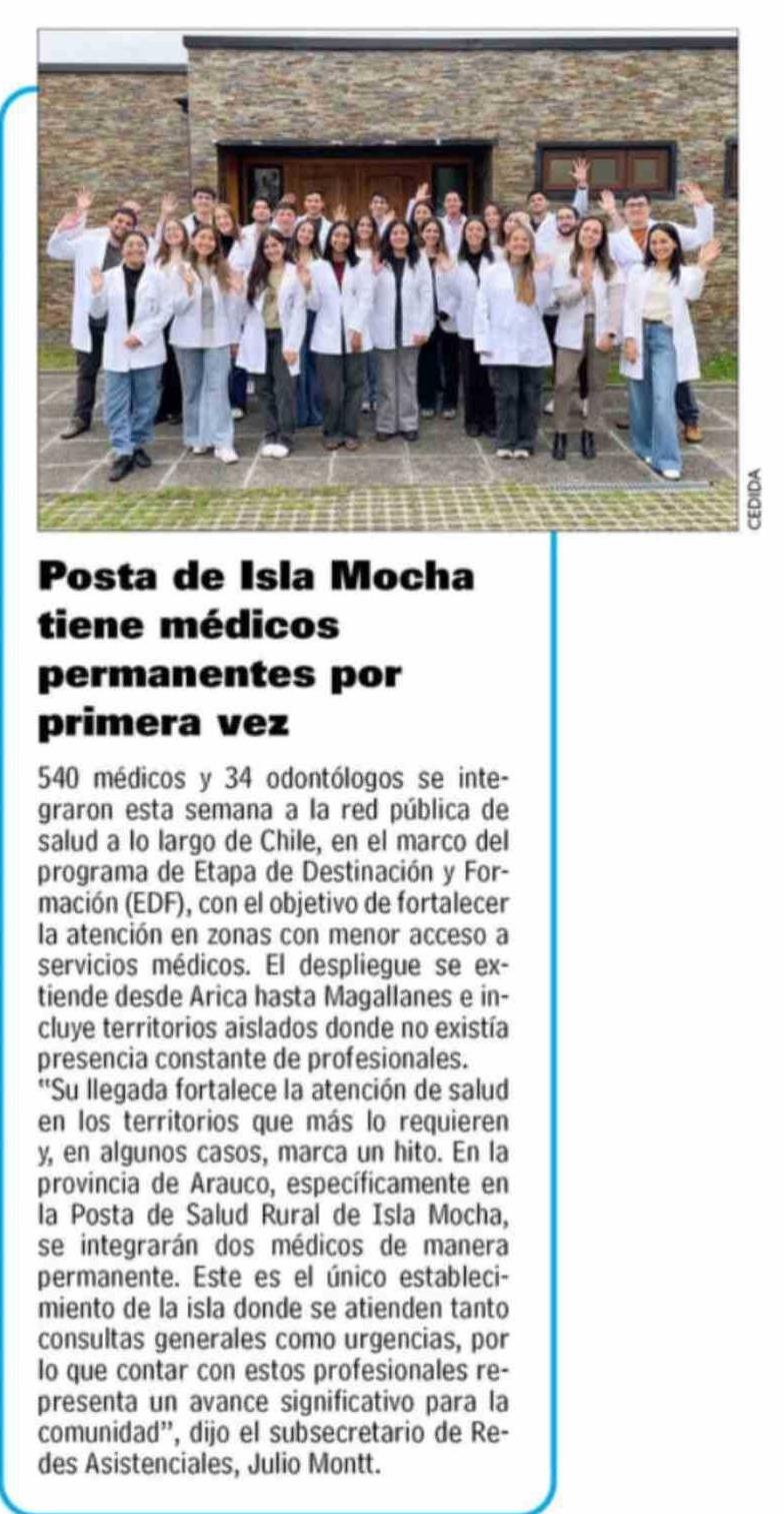 Posta de Isla Mocha tiene médicos permanentes por primera vez 12-04-2026 Las Últimas Noticias |