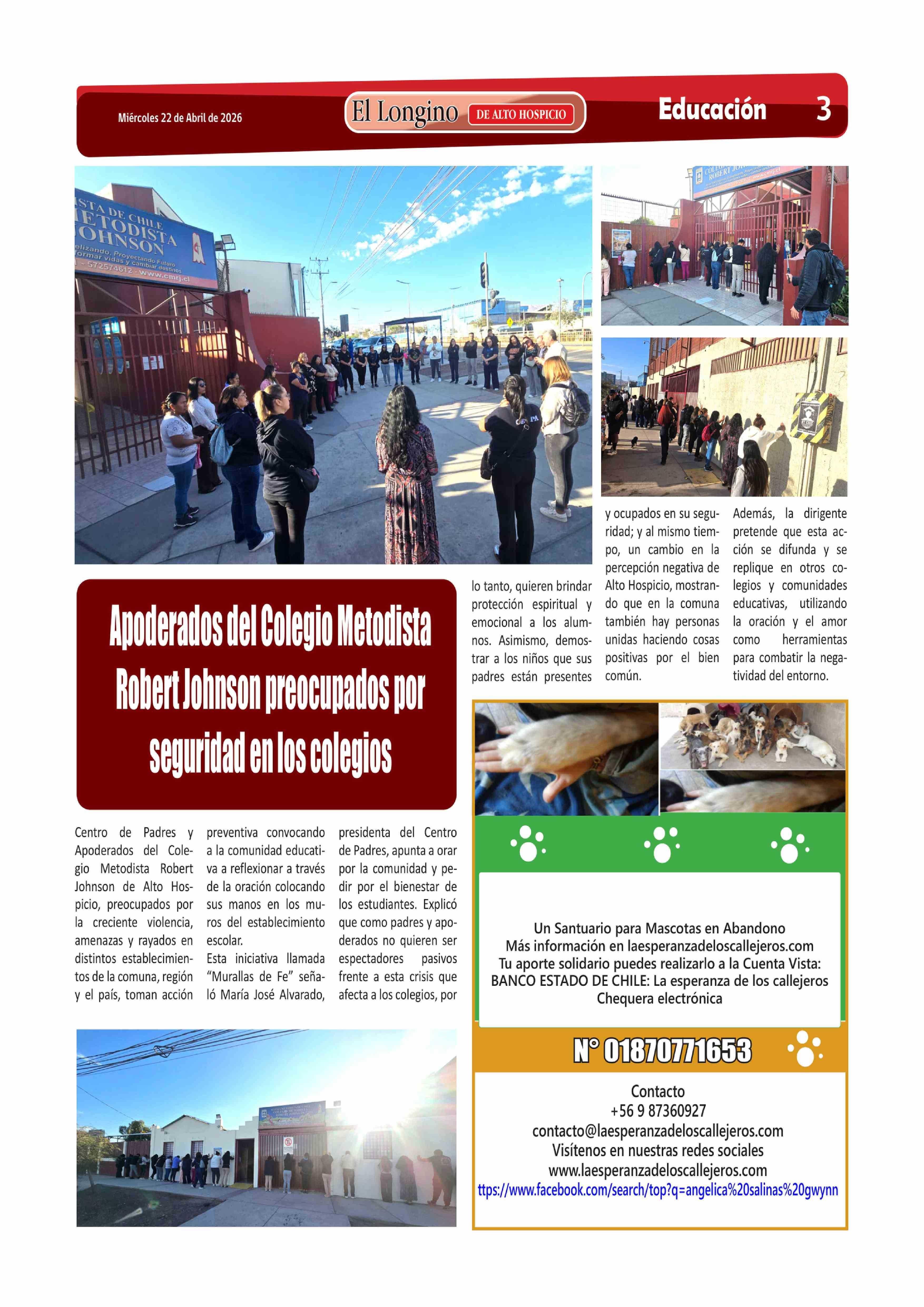 Apoderados del Colegio Metodista Robert Johnson preocupados por seguridad en los colegios 22-04-2026 El Longino |
