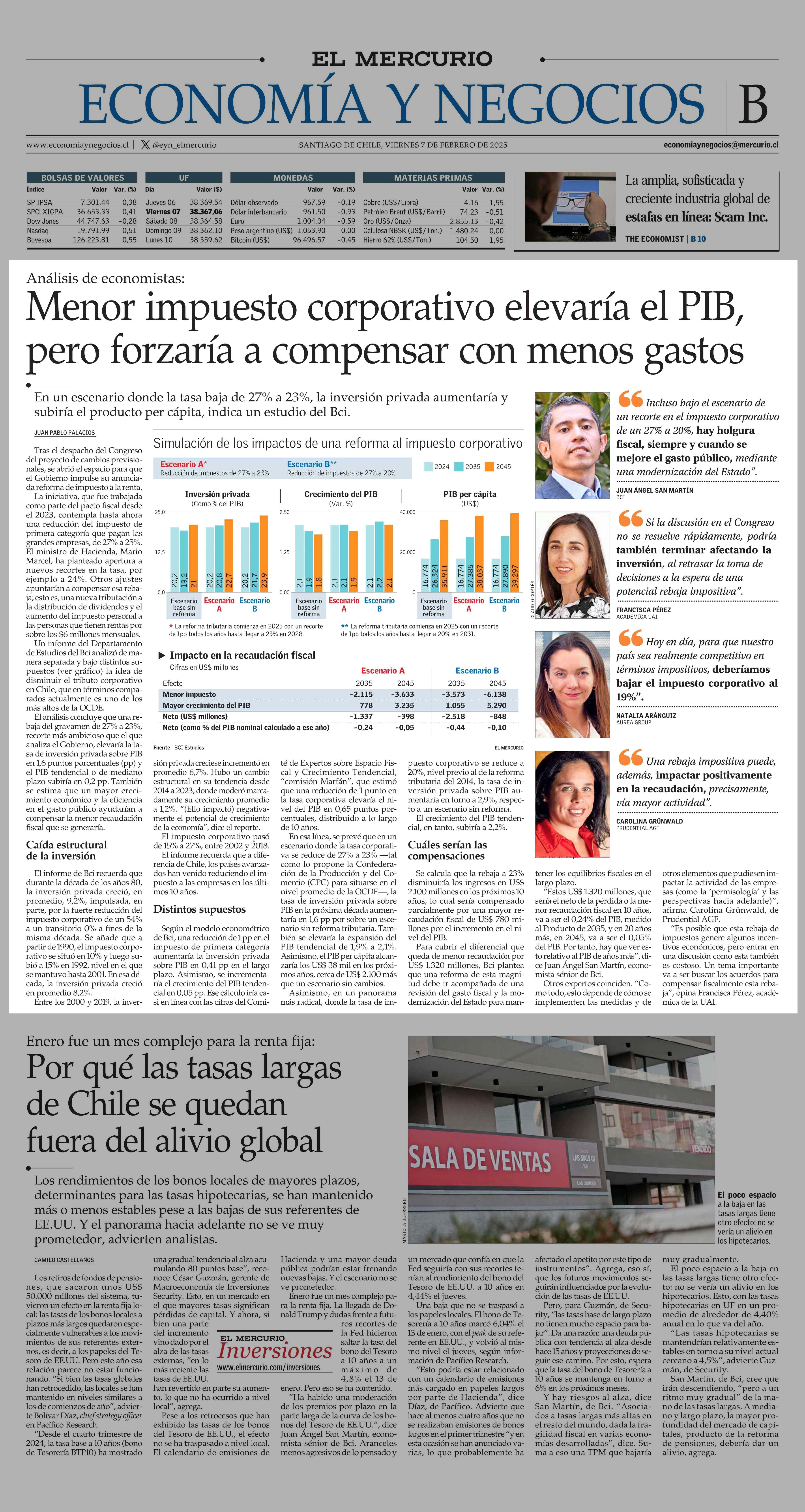 Menor impuesto corporativo elevaría el PIB, pero forzaría a compensar con menos gastos 07-02-2025 El Mercurio |