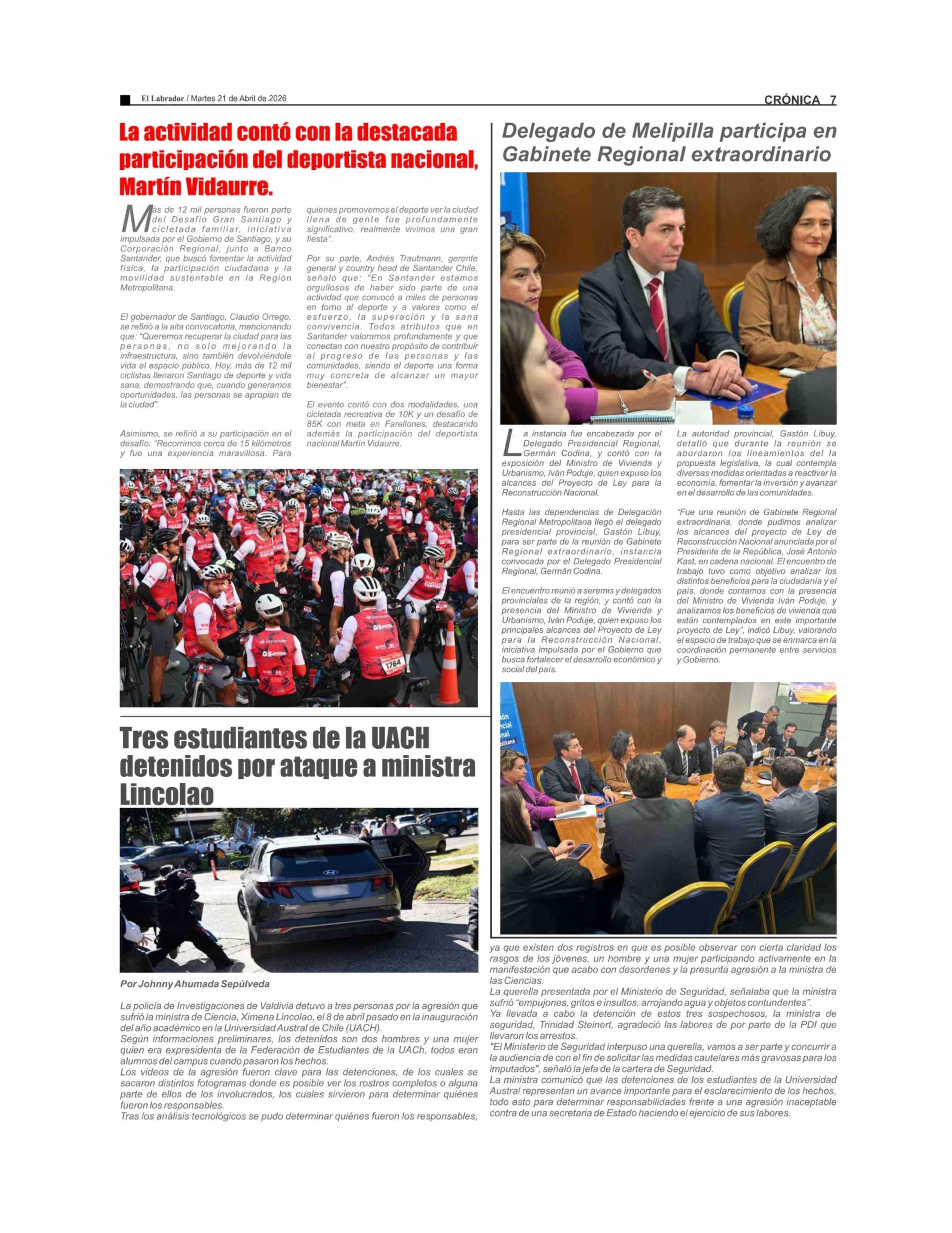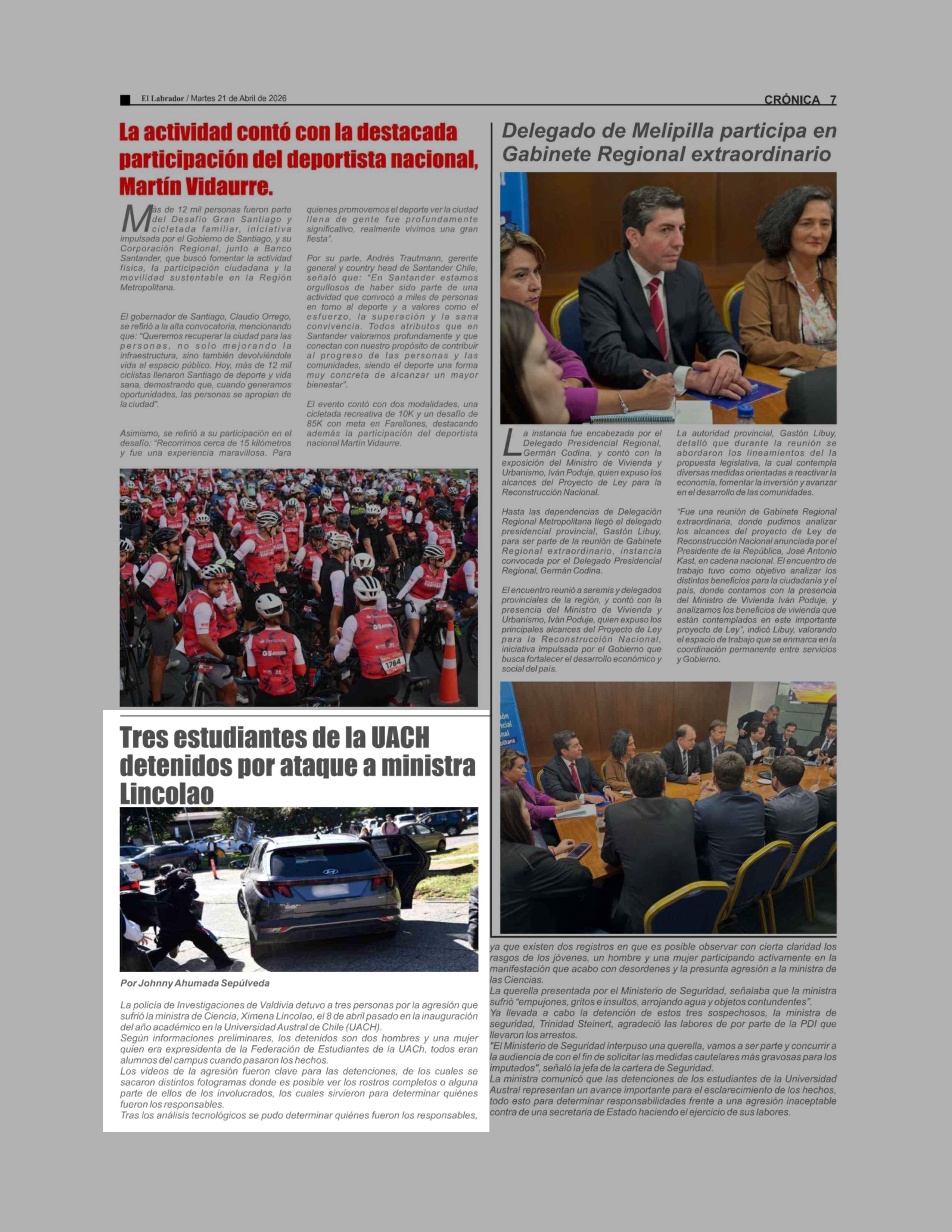 Tres estudiantes de la UACH detenidos por ataque a ministra Lincolao 21-04-2026 El Labrador |
