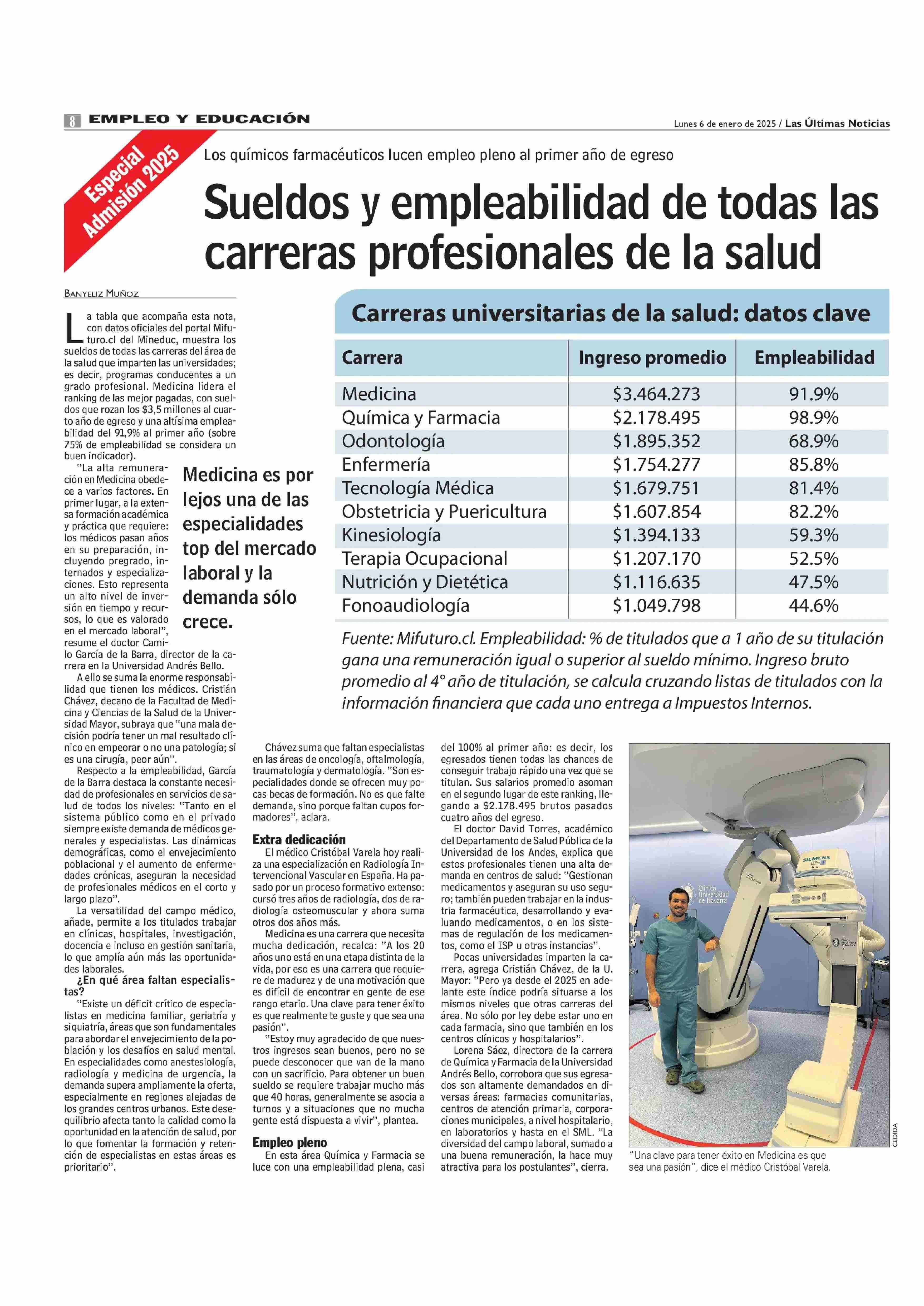 Sueldos y empleabilidad de todas las carreras profesionales de la salud 06-01-2025 Las Últimas Noticias |