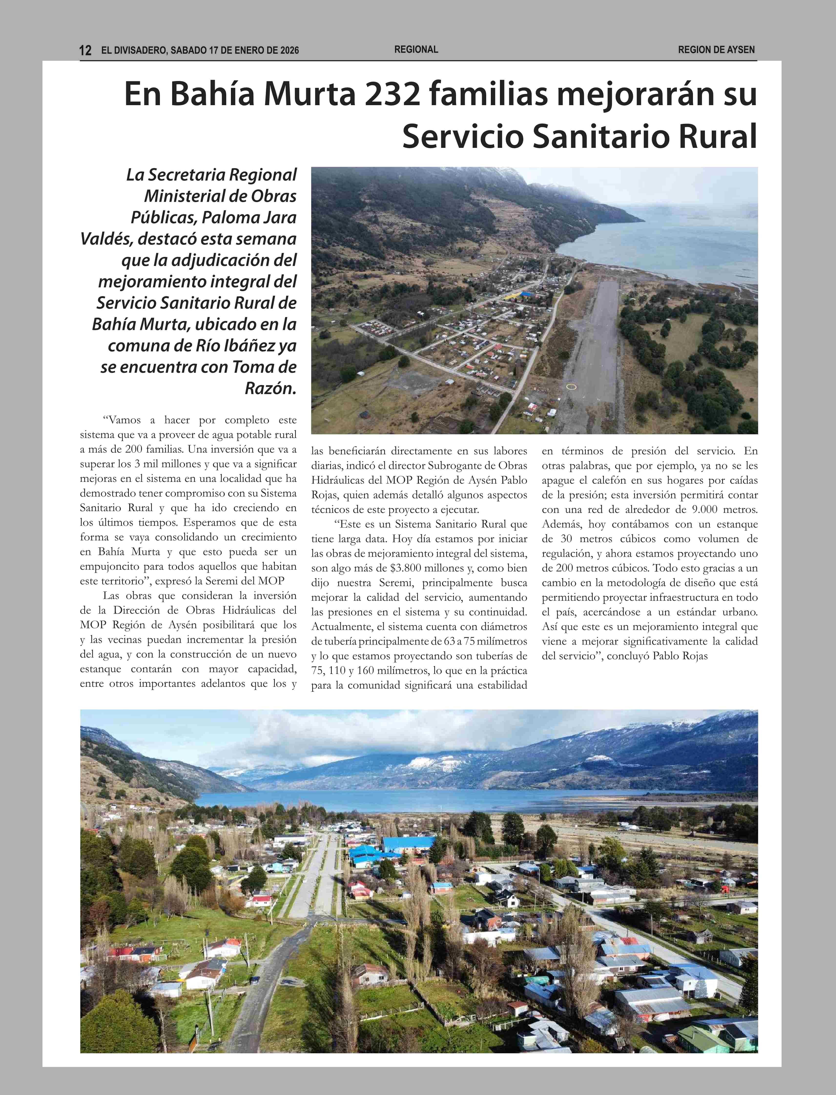 En Bahía Murta 232 familias mejorarán su Servicio Sanitario Rural 17-01-2026 El Divisadero |