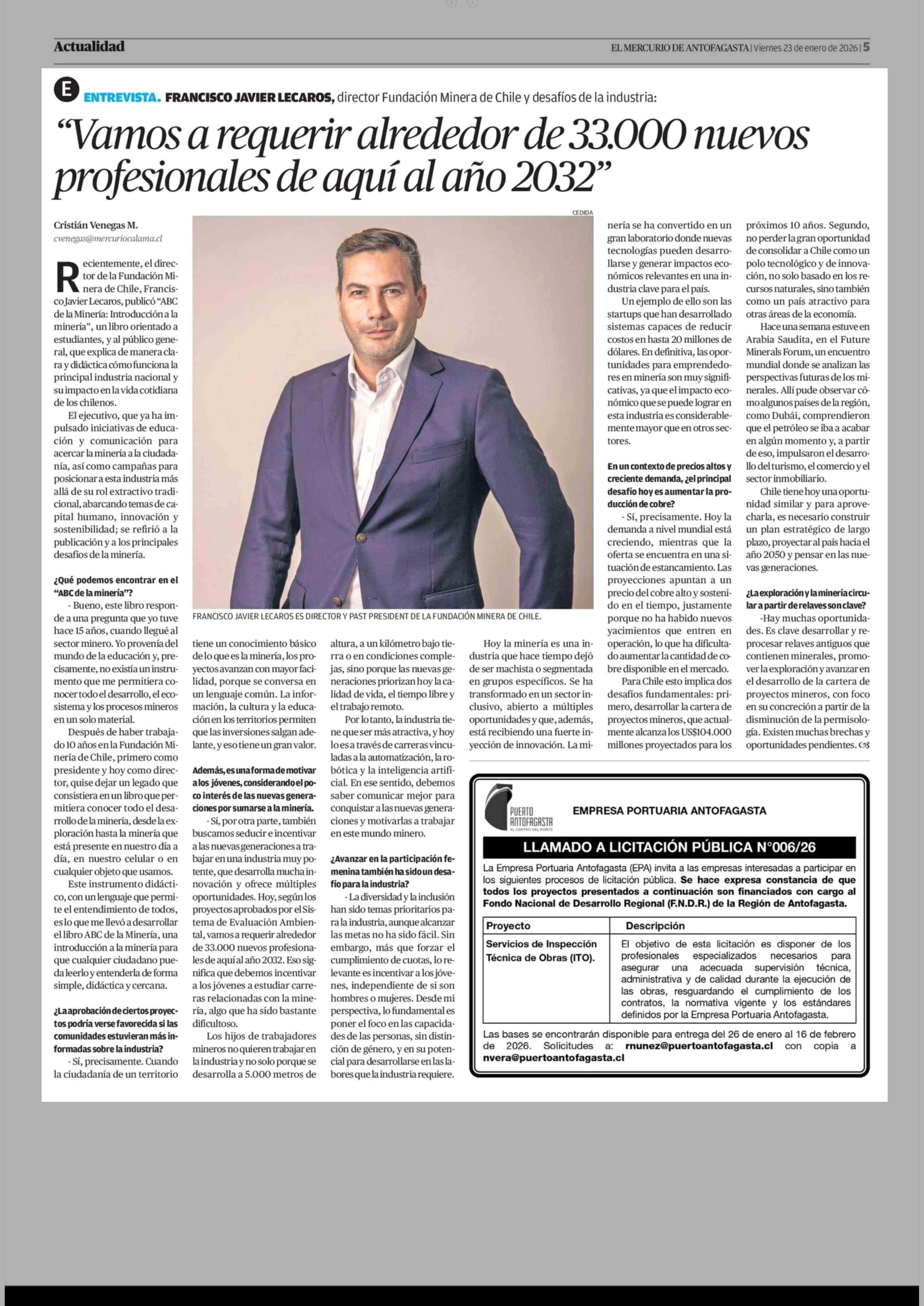23-01-2026 El Mercurio de Antofagasta