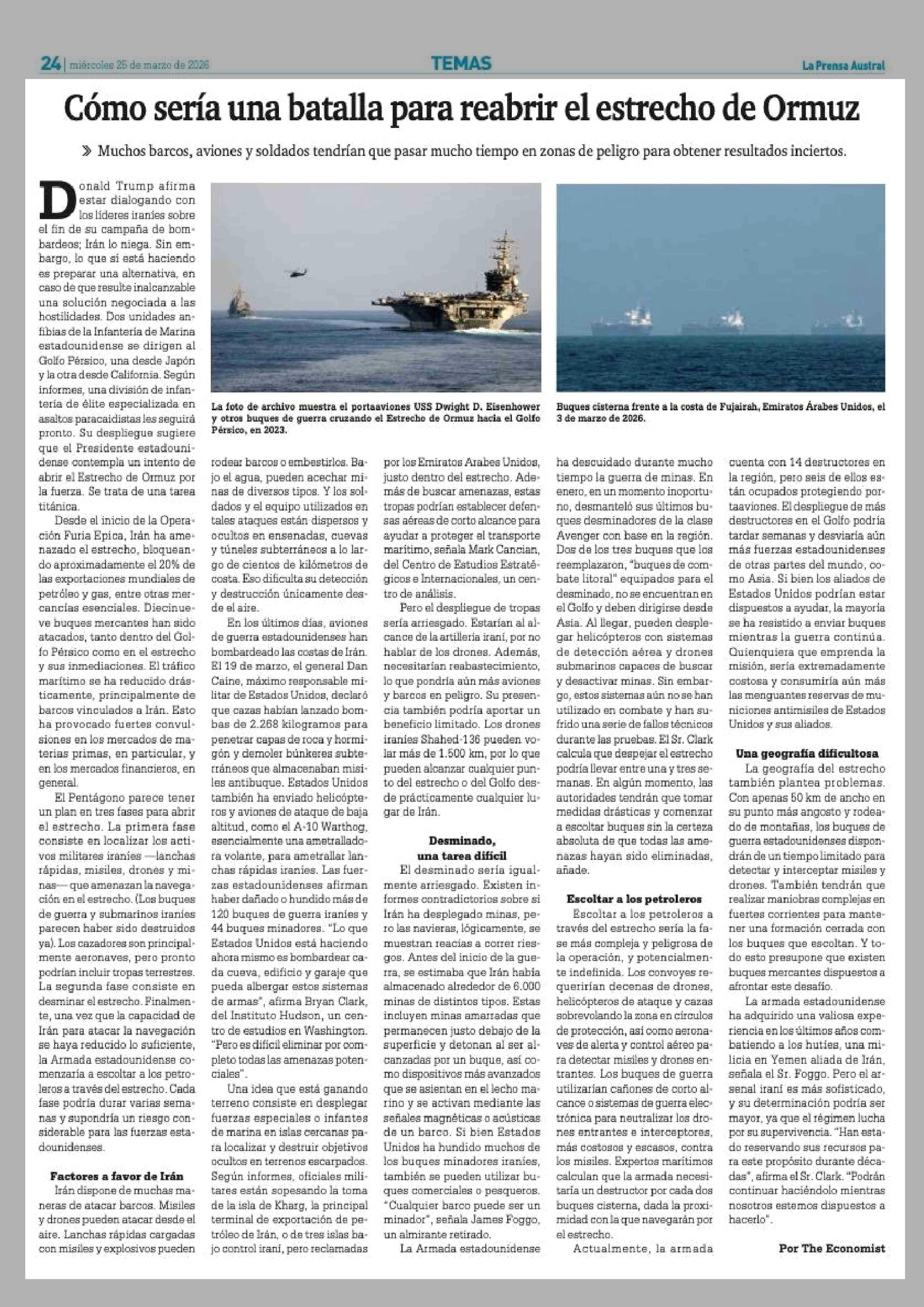 Cómo sería una batalla para reabrir el estrecho de Ormuz 25-03-2026 La Prensa Austral |