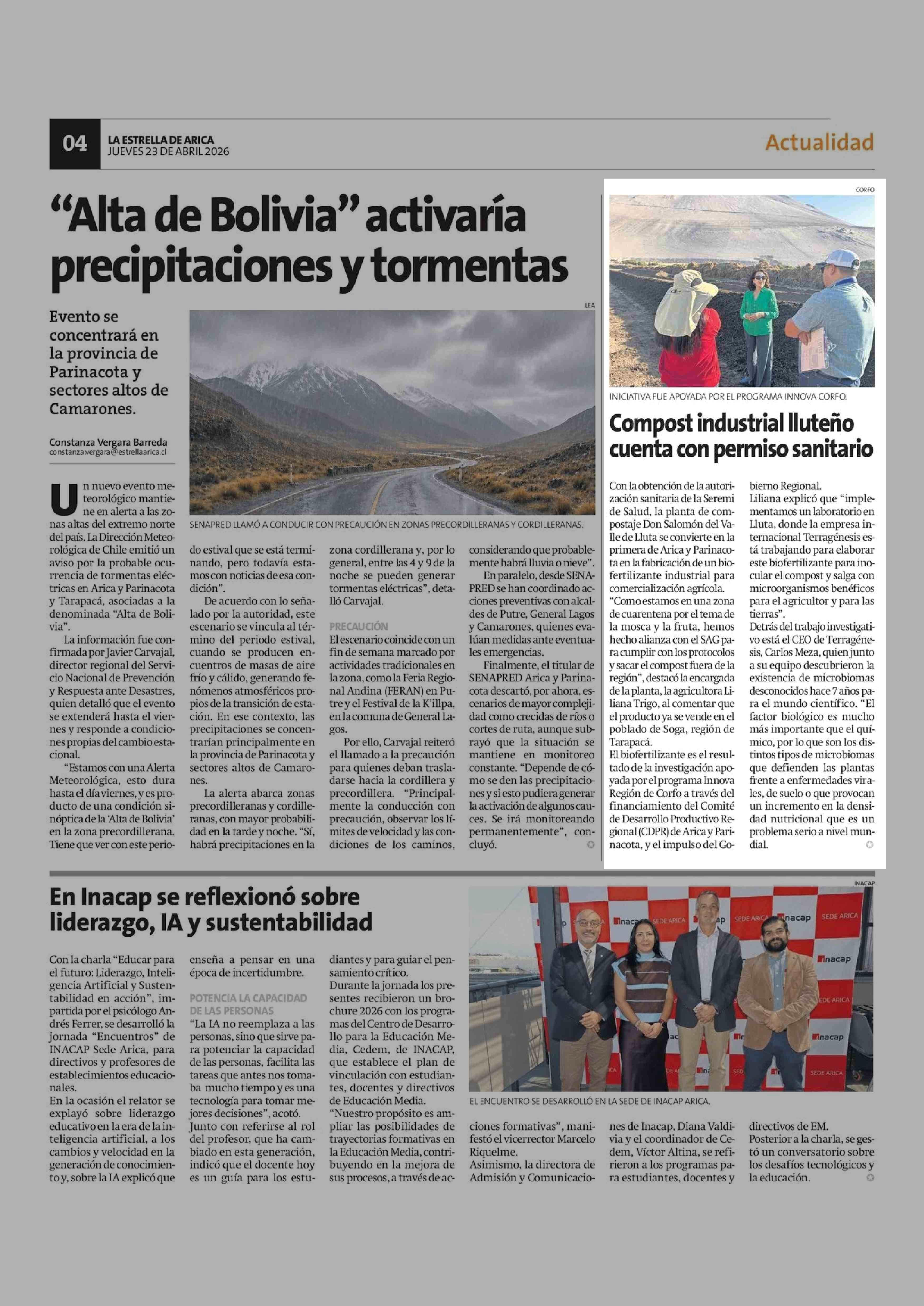 Fecha: 23-04-2026 Sector: Noticia general Región: Región de Arica y Parinacota