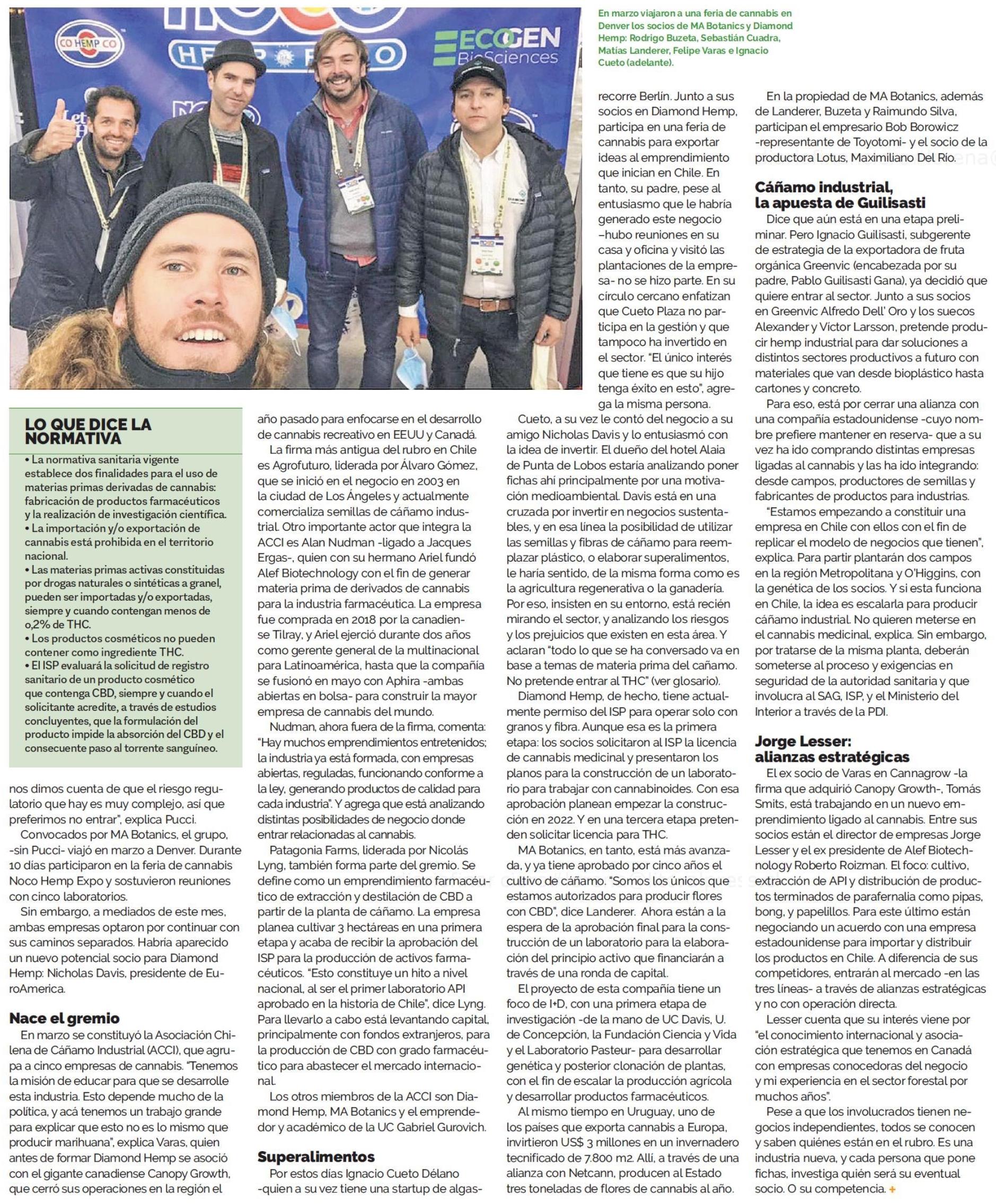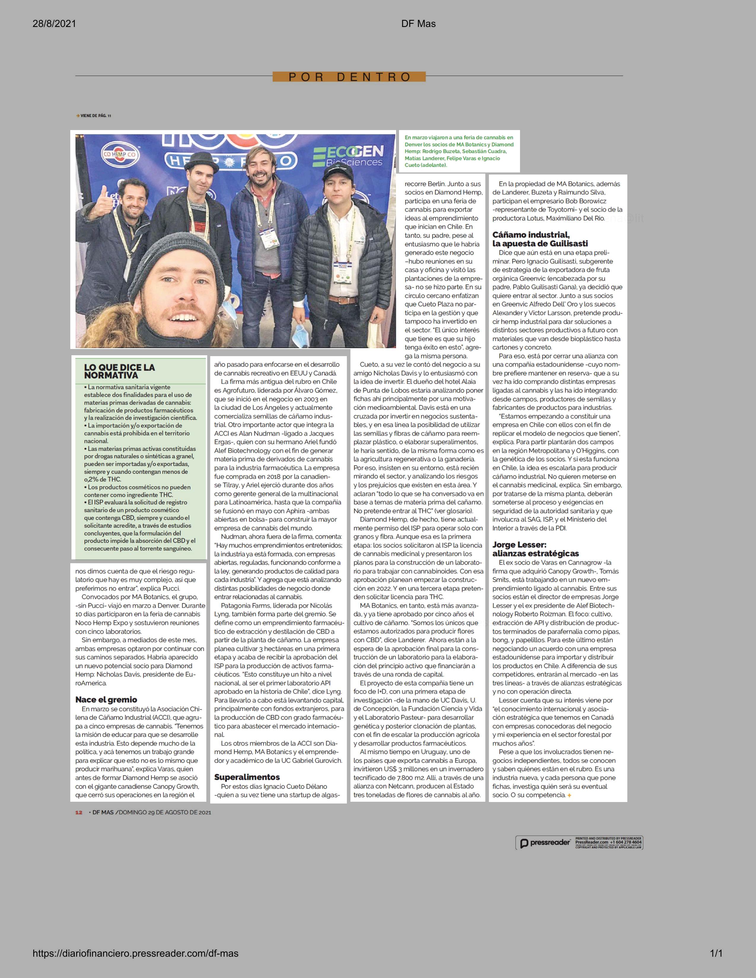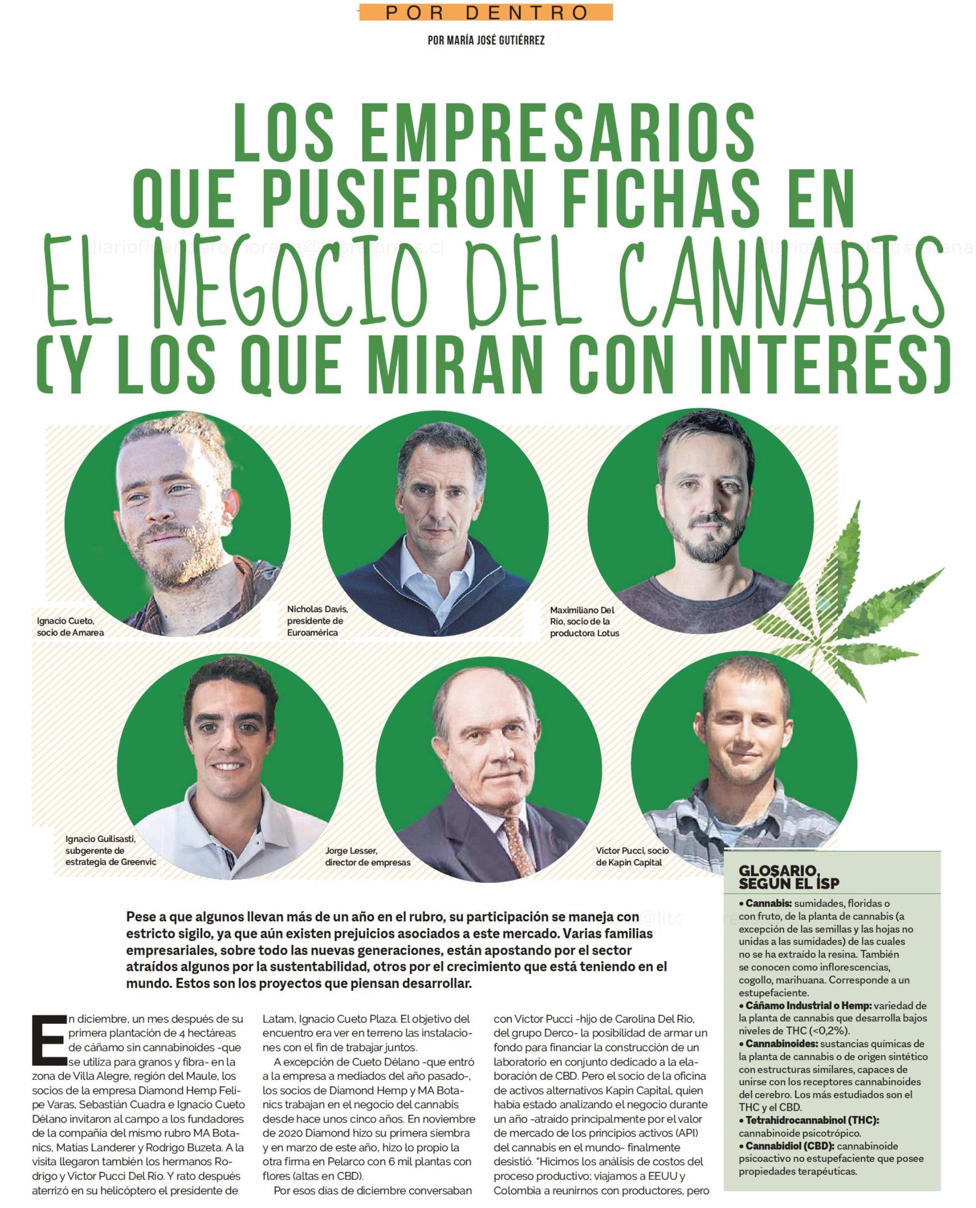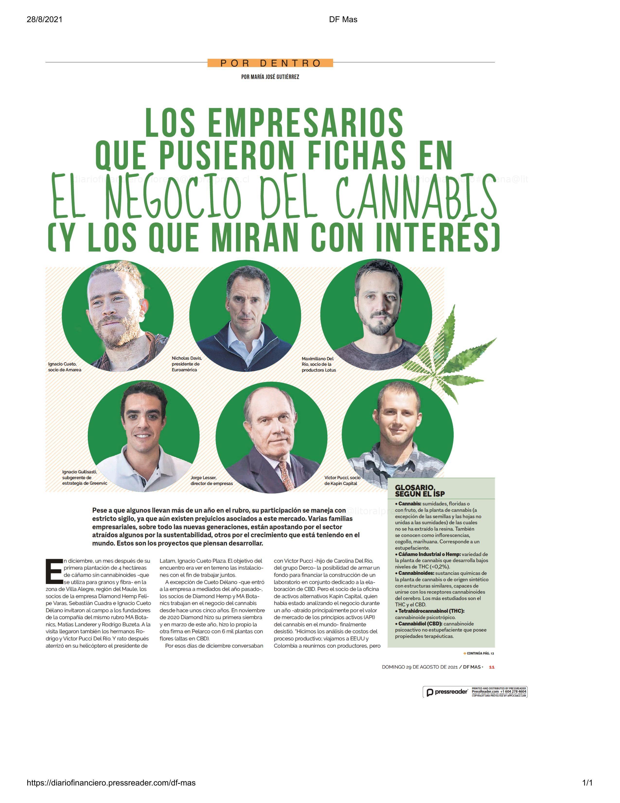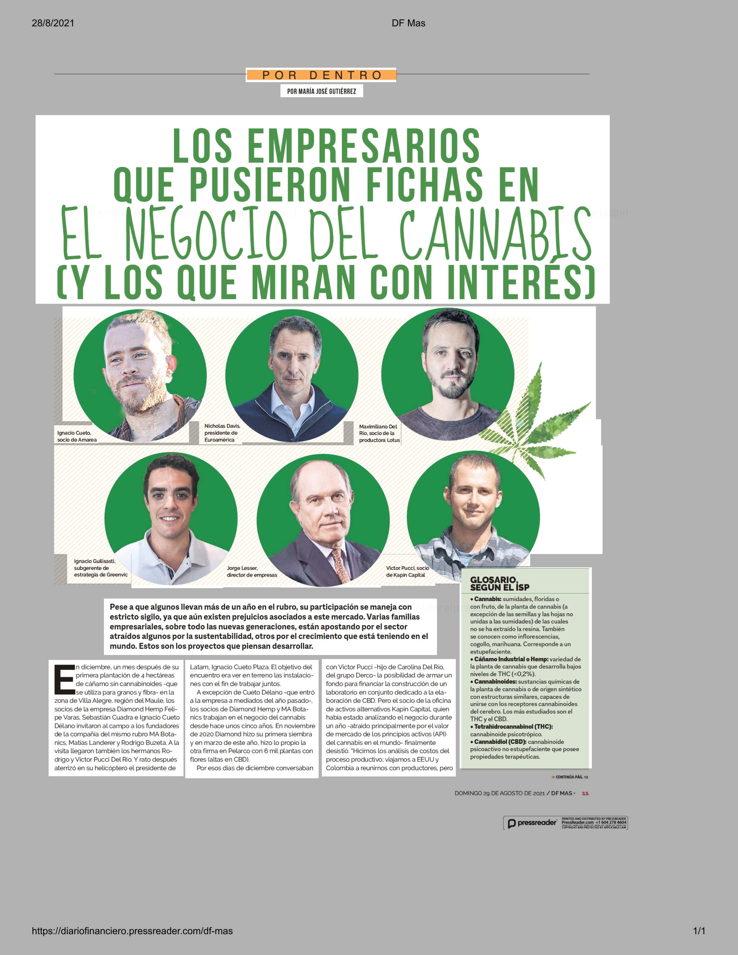 LOS EMPRESARIOS QUE PUSIERON FICHAS EN EL NEGOCIO DEL CANNABIS (Y LOS QUE MIRAN CON INTERÉS) 29-08-2021 Diario Financiero |