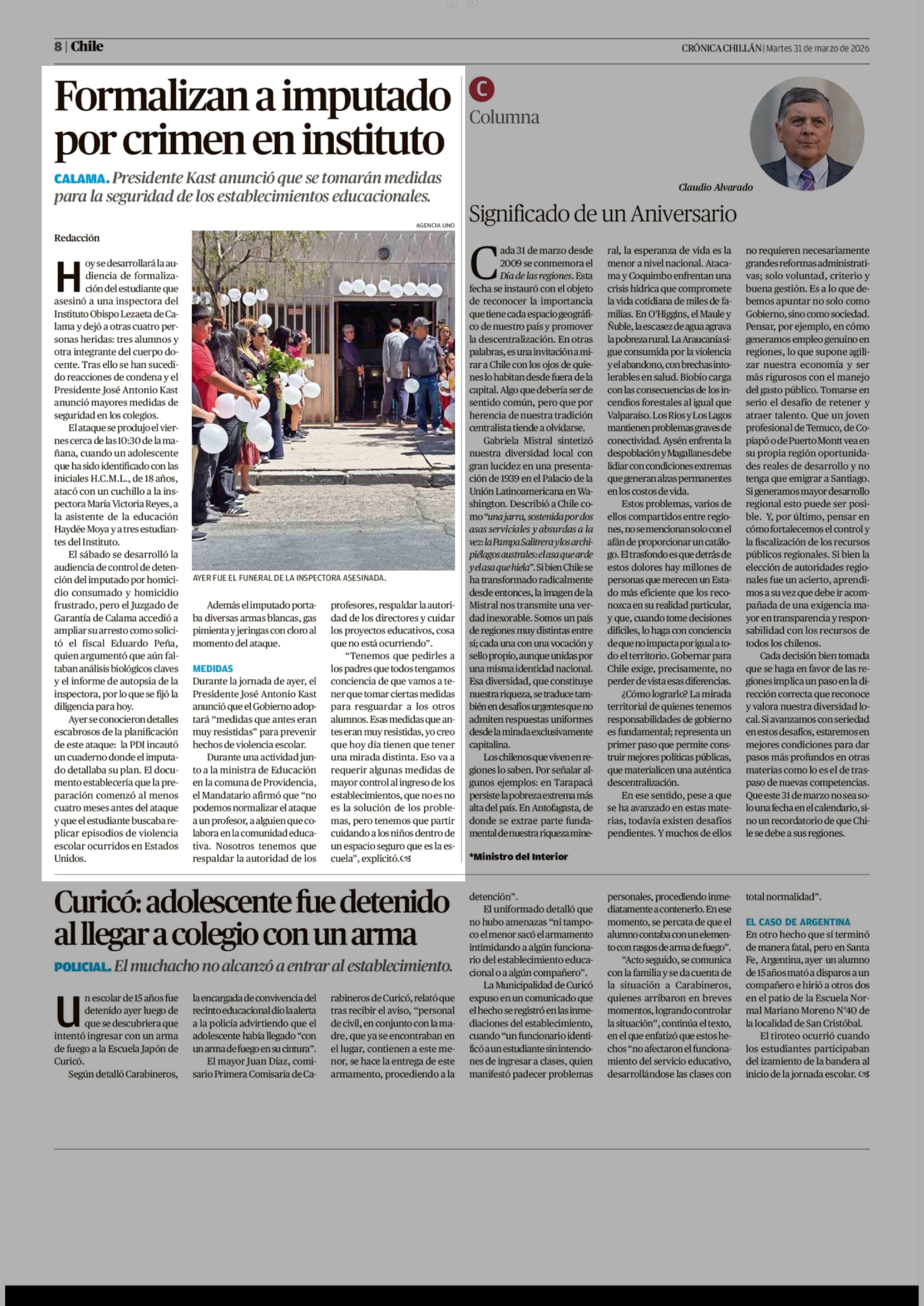| Fecha: | 31-03-2026 | Sector: | Noticia general | Región: | Región del Ñuble |