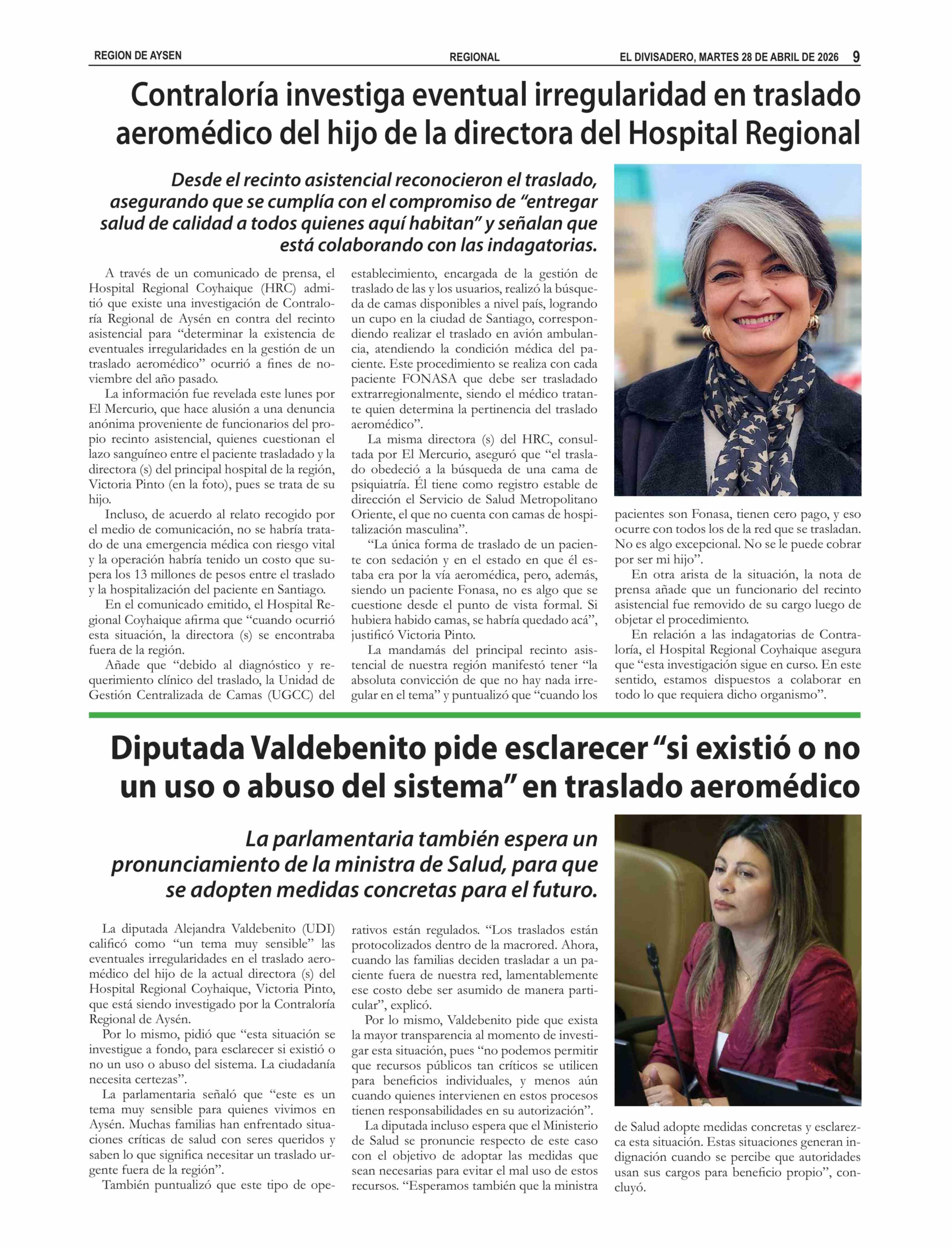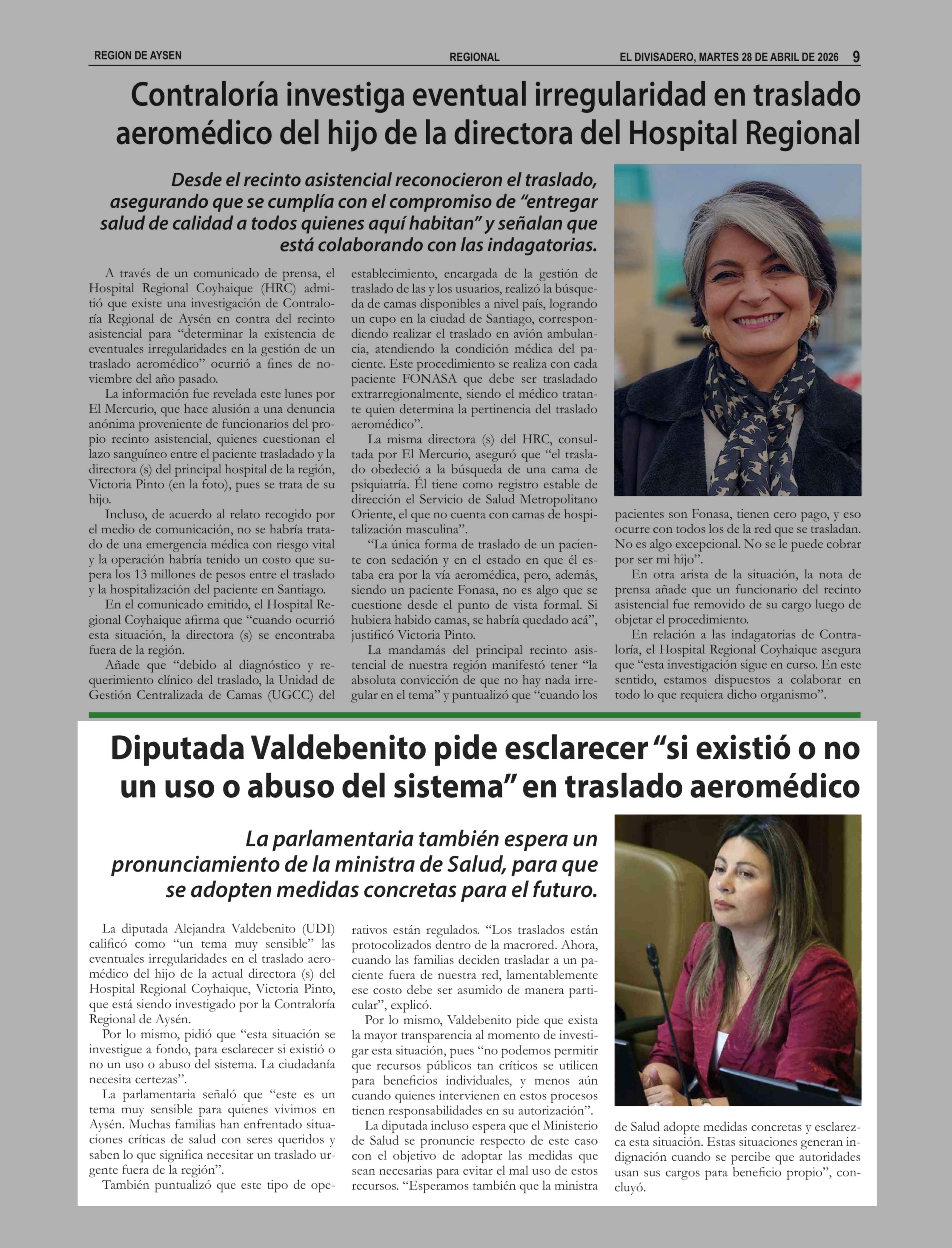 Diputada Valdebenito pide esclarecer "si existió o no un uso o abuso del sistema" en traslado aeromédico 28-04-2026 El Divisadero |