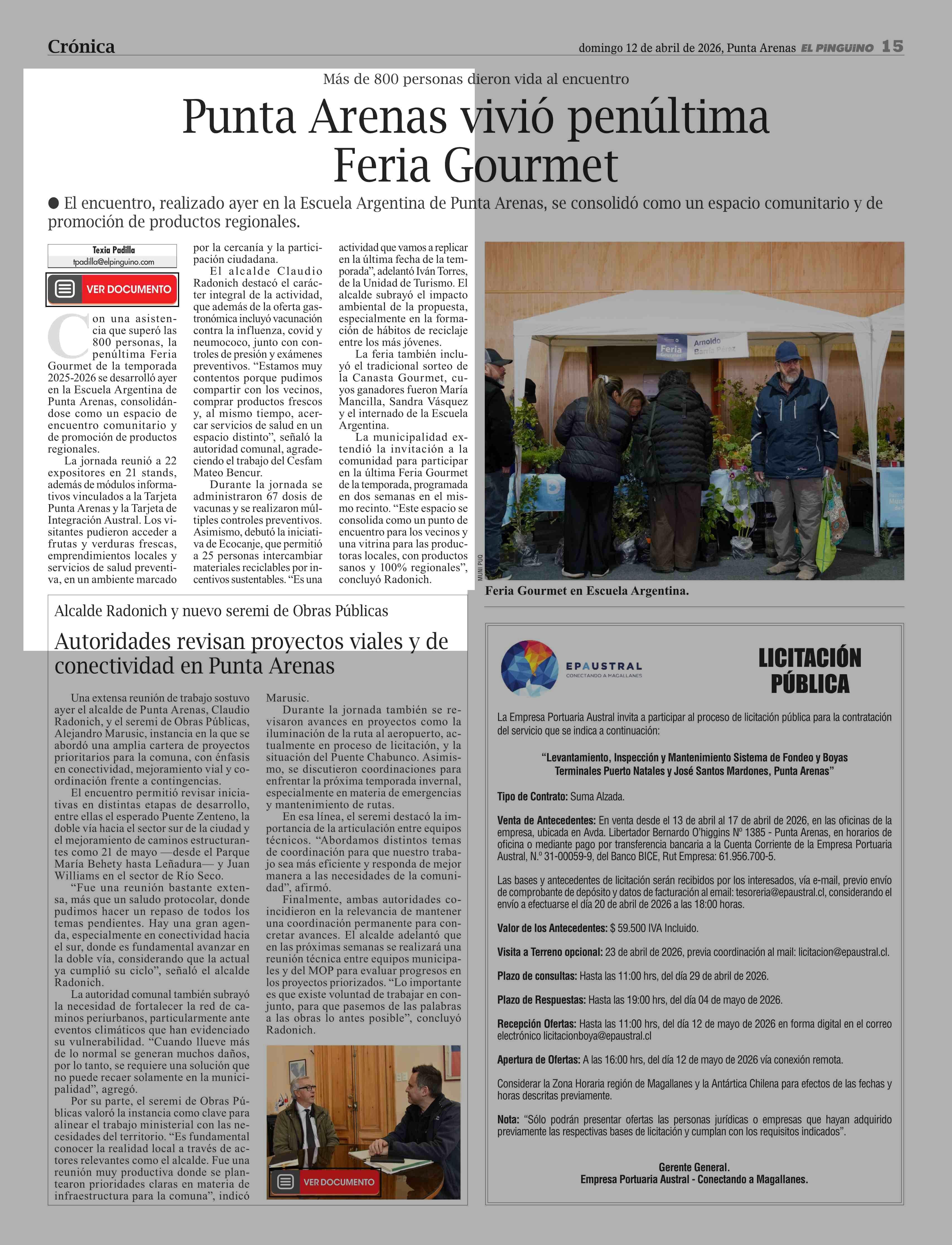 Fecha: 12-04-2026 Sector: Noticia general Región: Región de Magallanes y de la Antártica Chilena