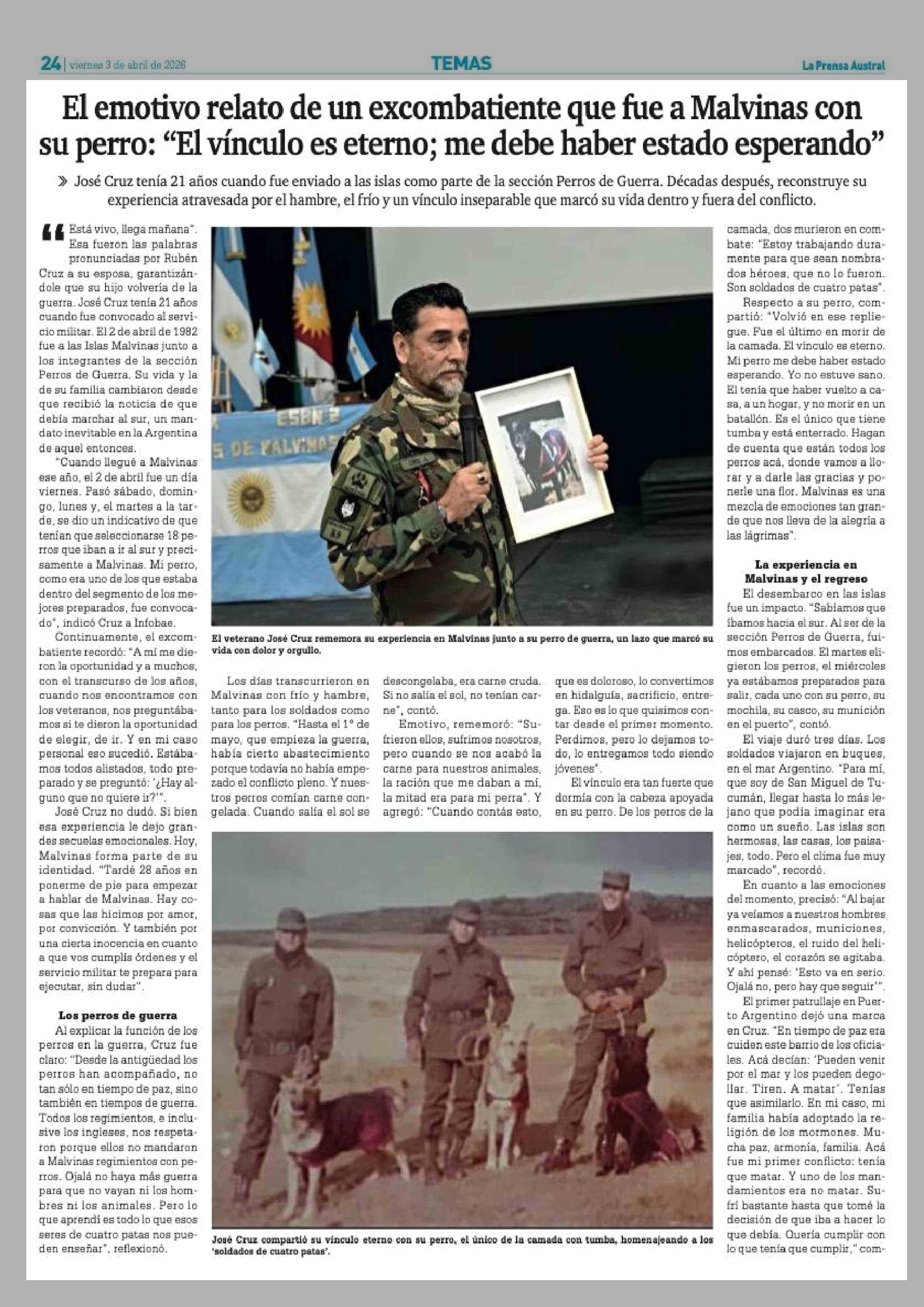 Título: El emotivo relato de un excombatiente que fue a Malvinas con su perro: "El vínculo es eterno; me debe haber estado esperando"