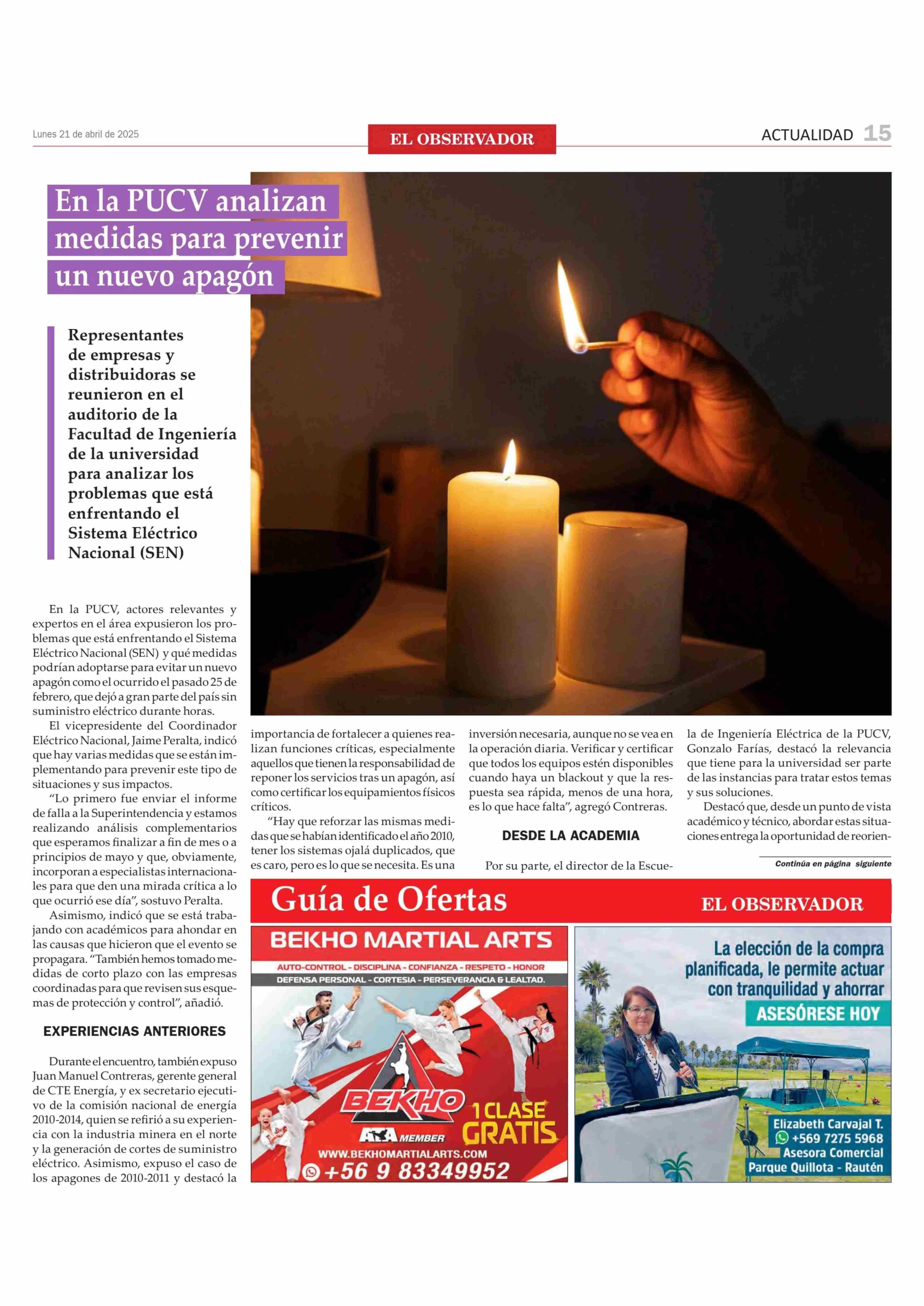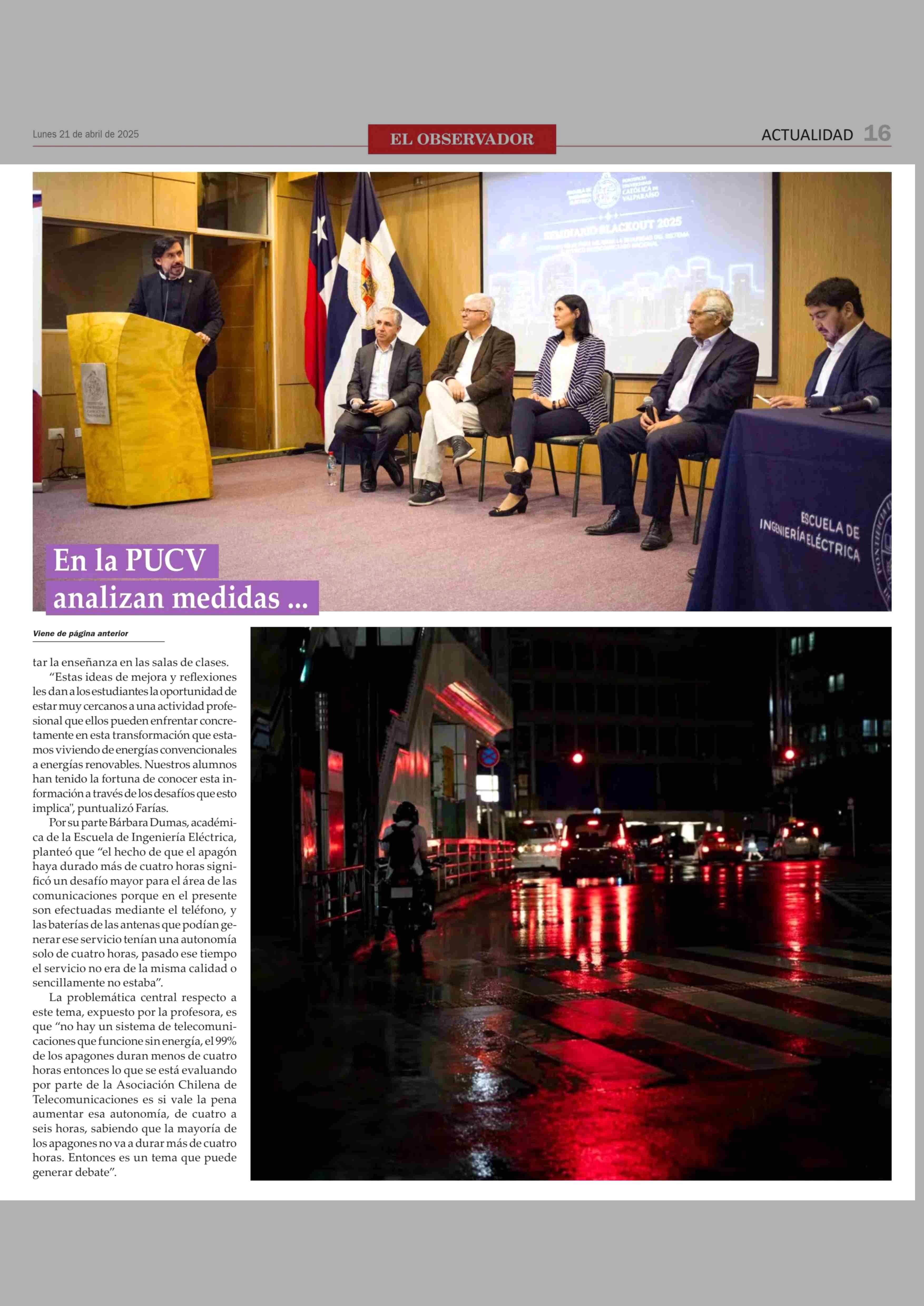 En la PUCV analizan medidas para prevenir un nuevo apagón 21-04-2025 El Observador Vespertino |