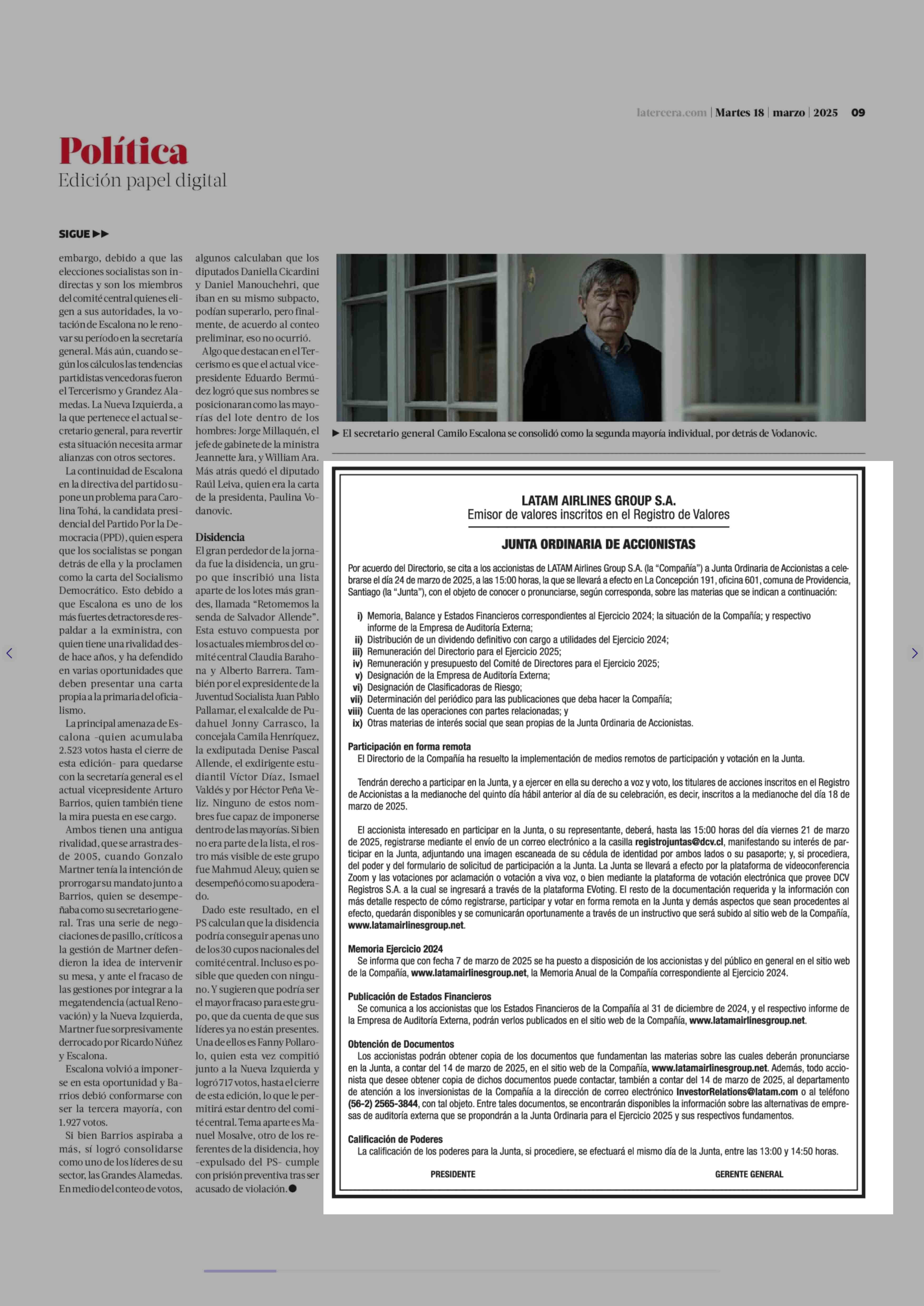 EXTRACTOS: LATAM AIRLINES GROUP S.A. 18-03-2025 La Tercera |