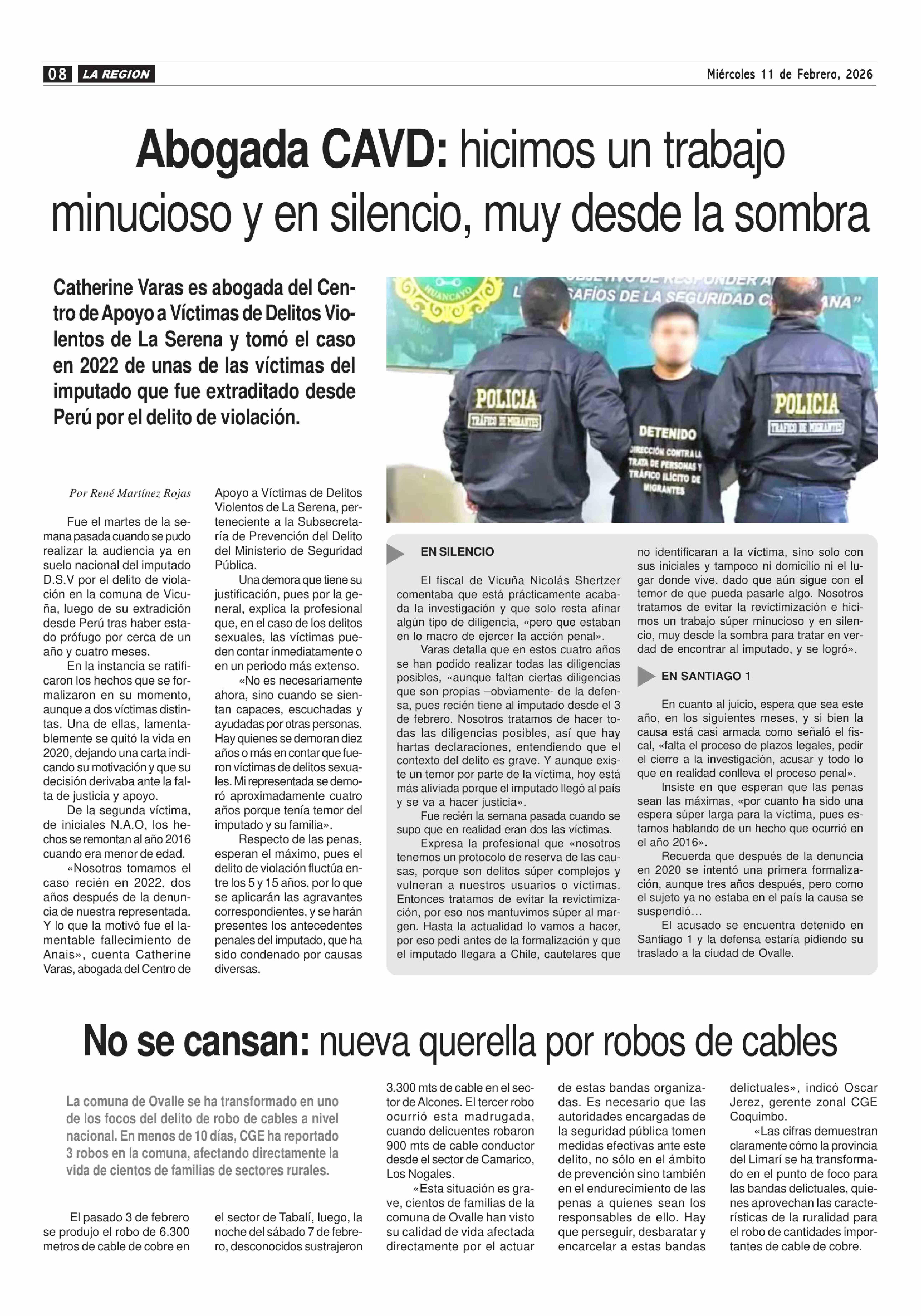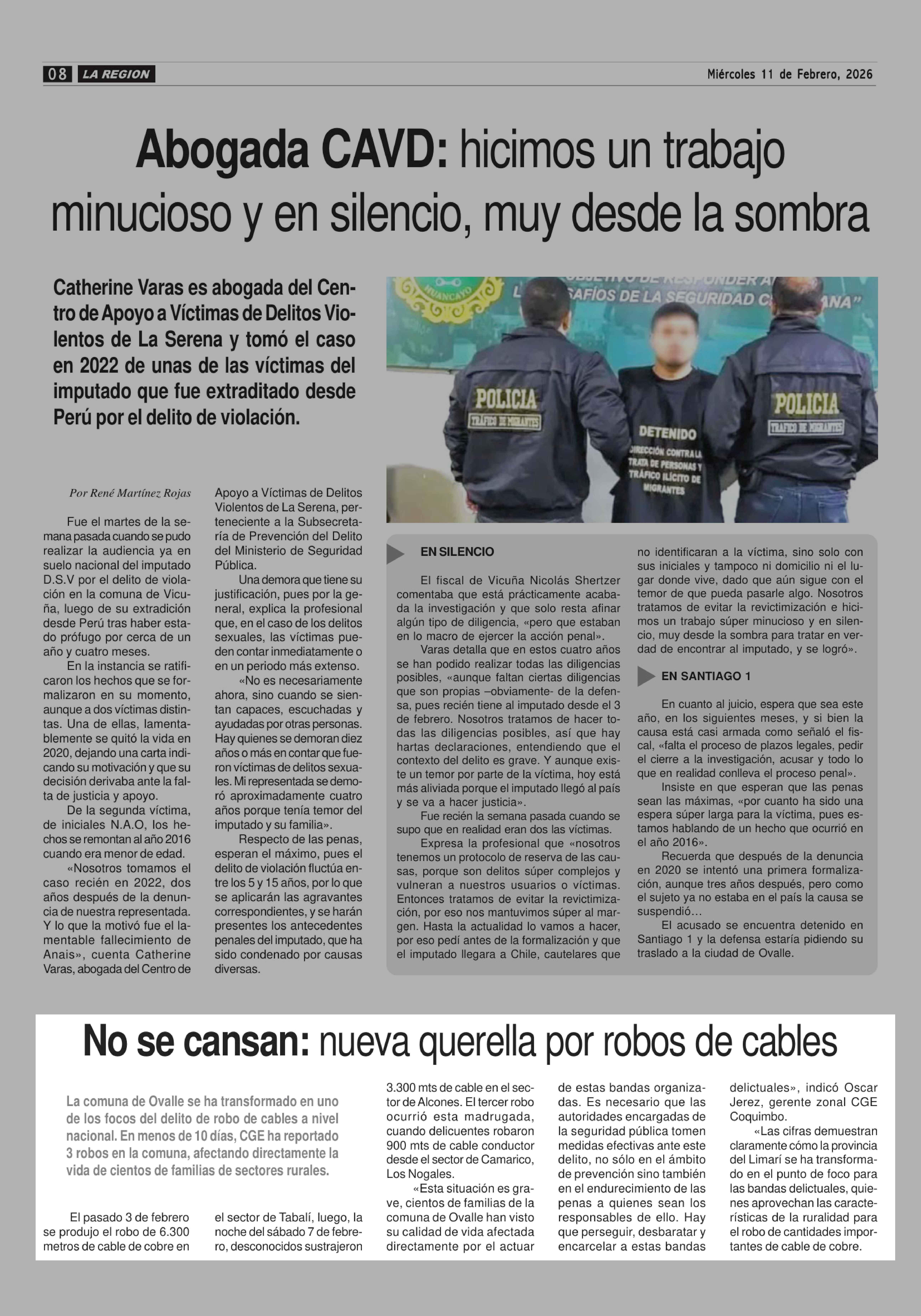 No se cansan: nueva querella por robos de cables 11-02-2026 Diario la Región |