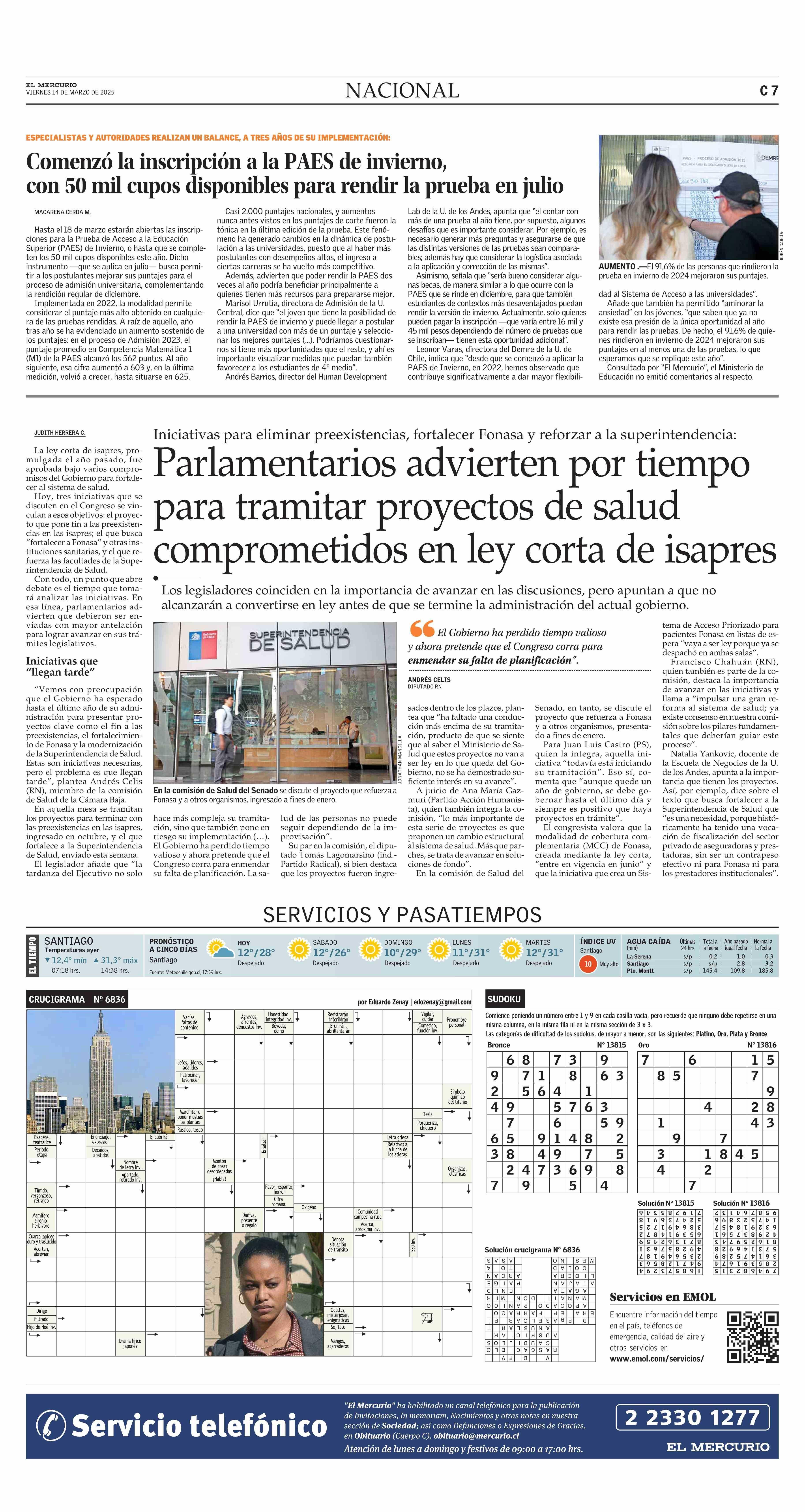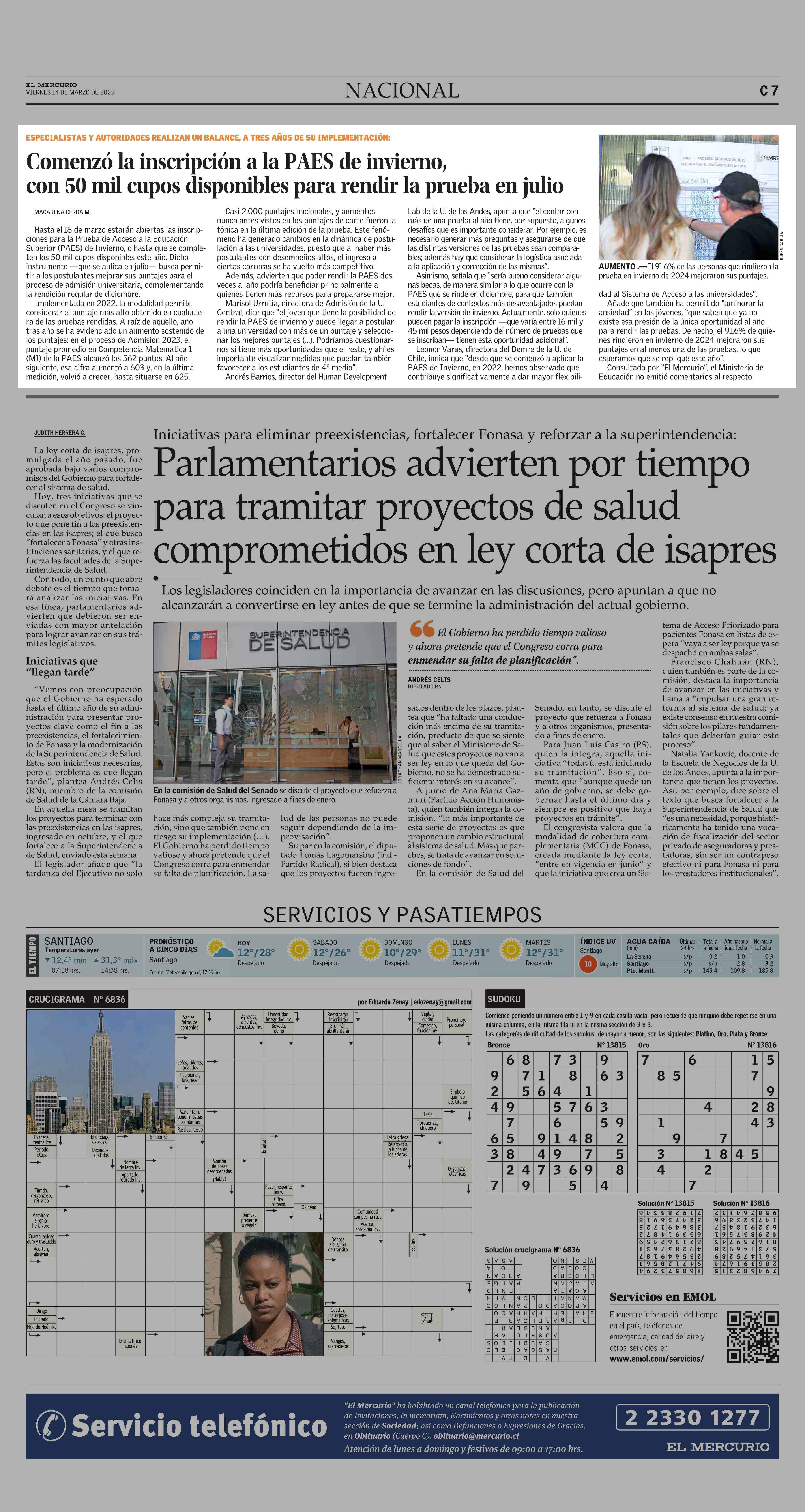 Comenzó la inscripción a la PAES de invierno, con 50 mil cupos disponibles para rendir la prueba en julio 14-03-2025 El Mercurio |