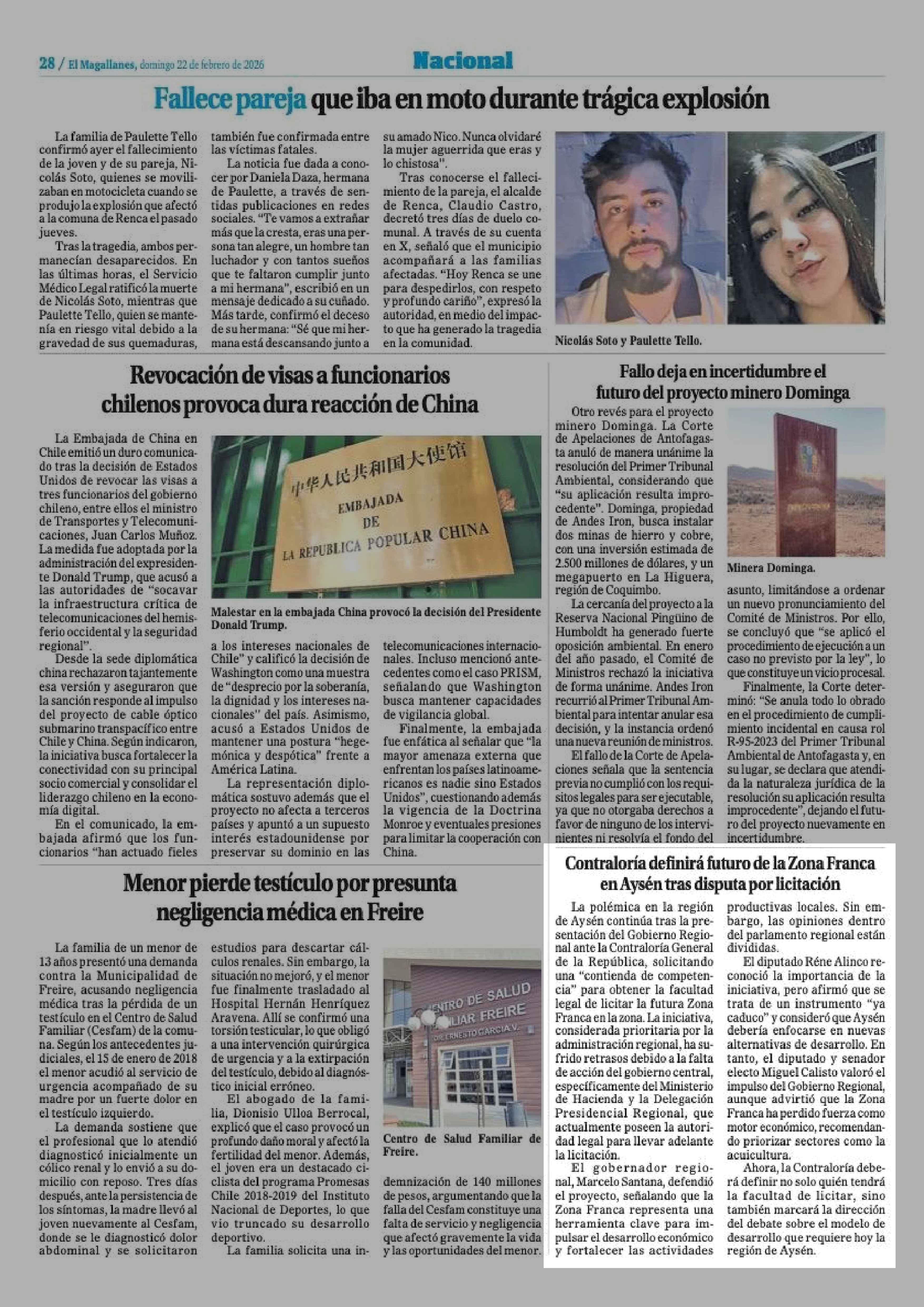| Fecha: | 22-02-2026 | Sector: | Noticia general | Región: | Región de Magallanes y de la Antártica Chilena |