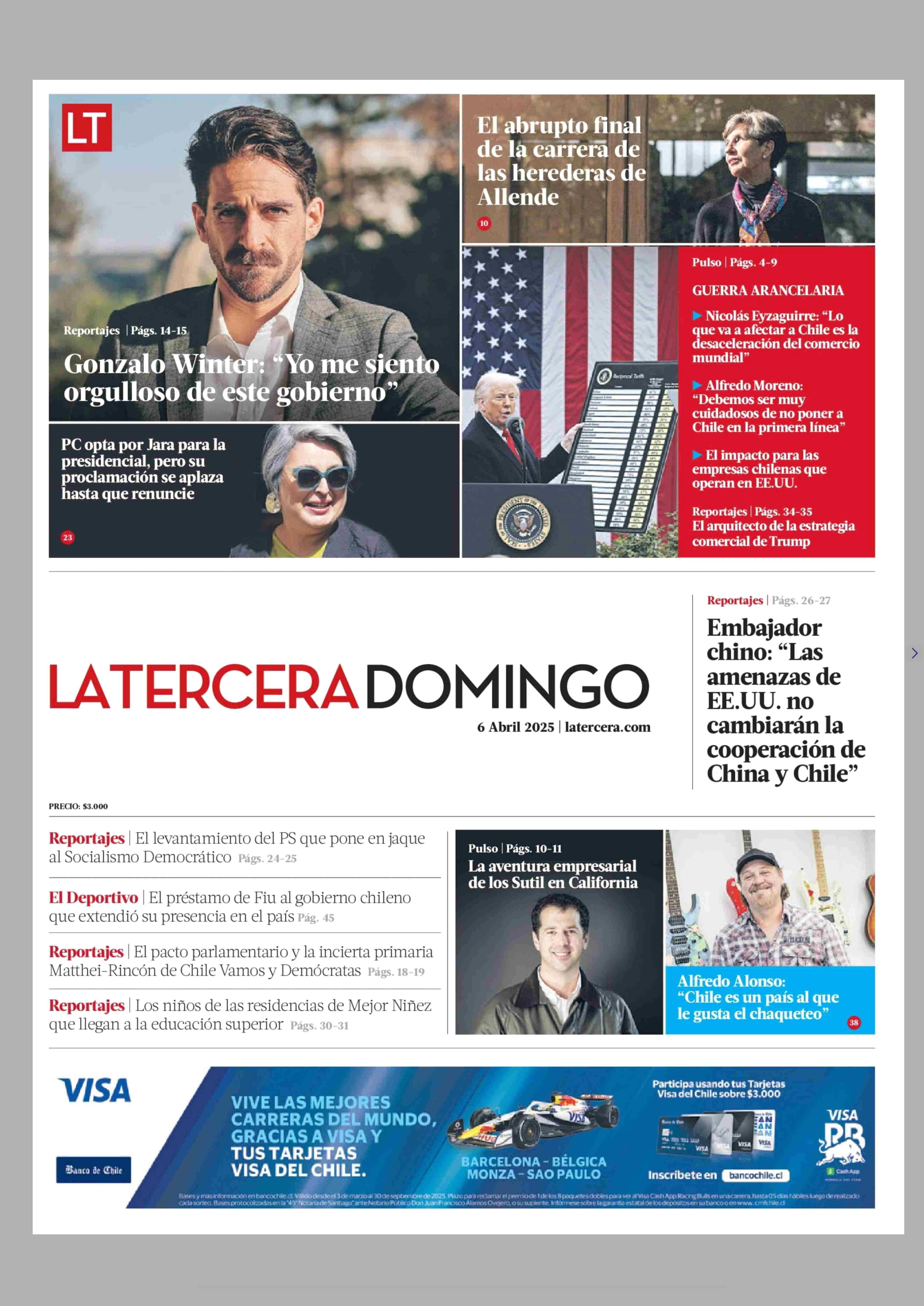 PORTADA LA TERCERA - CHILE 06-04-2025 La Tercera |