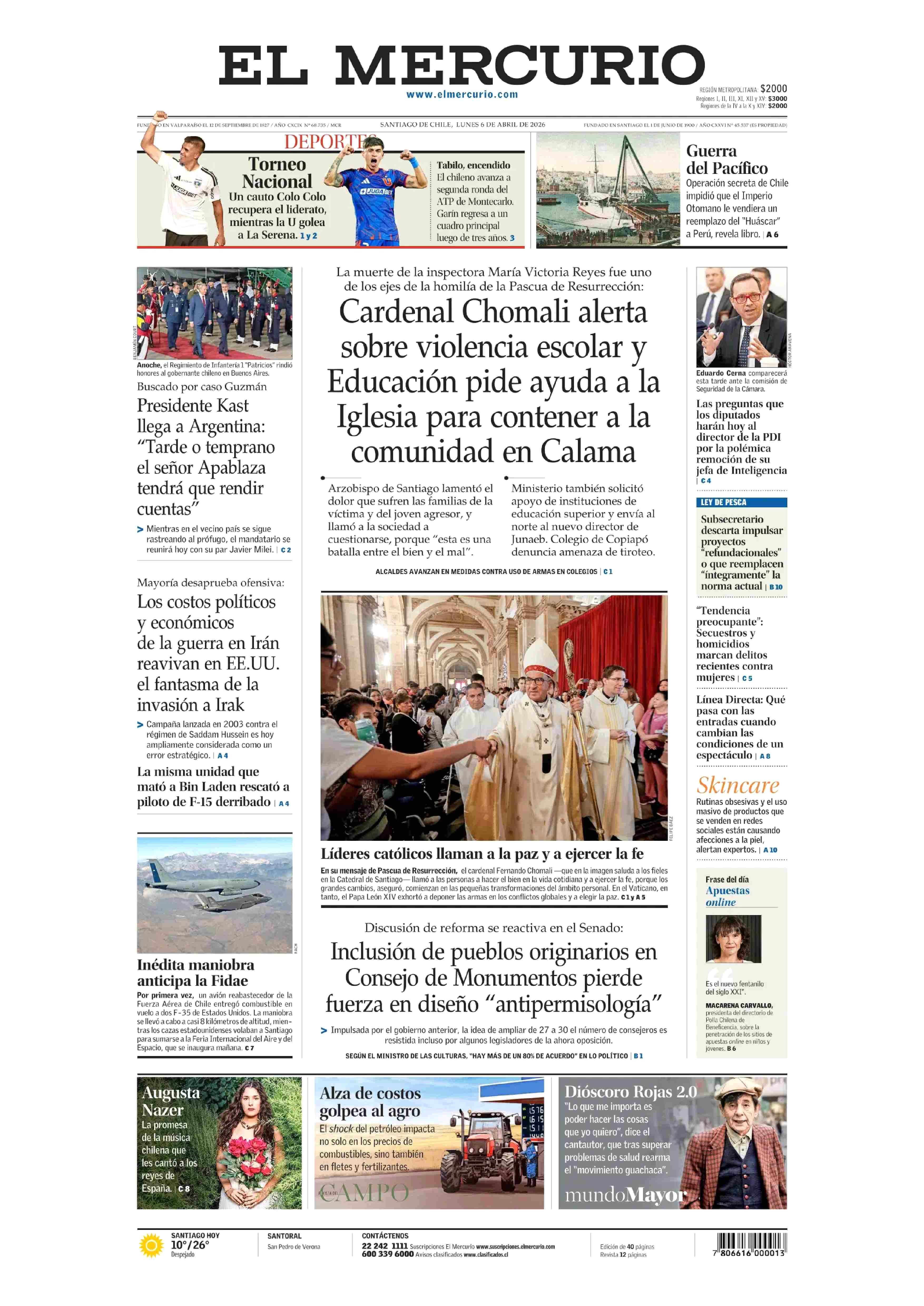 Fecha: 06-04-2026 Sector: Portada Región: Región Metropolitana de Santiago