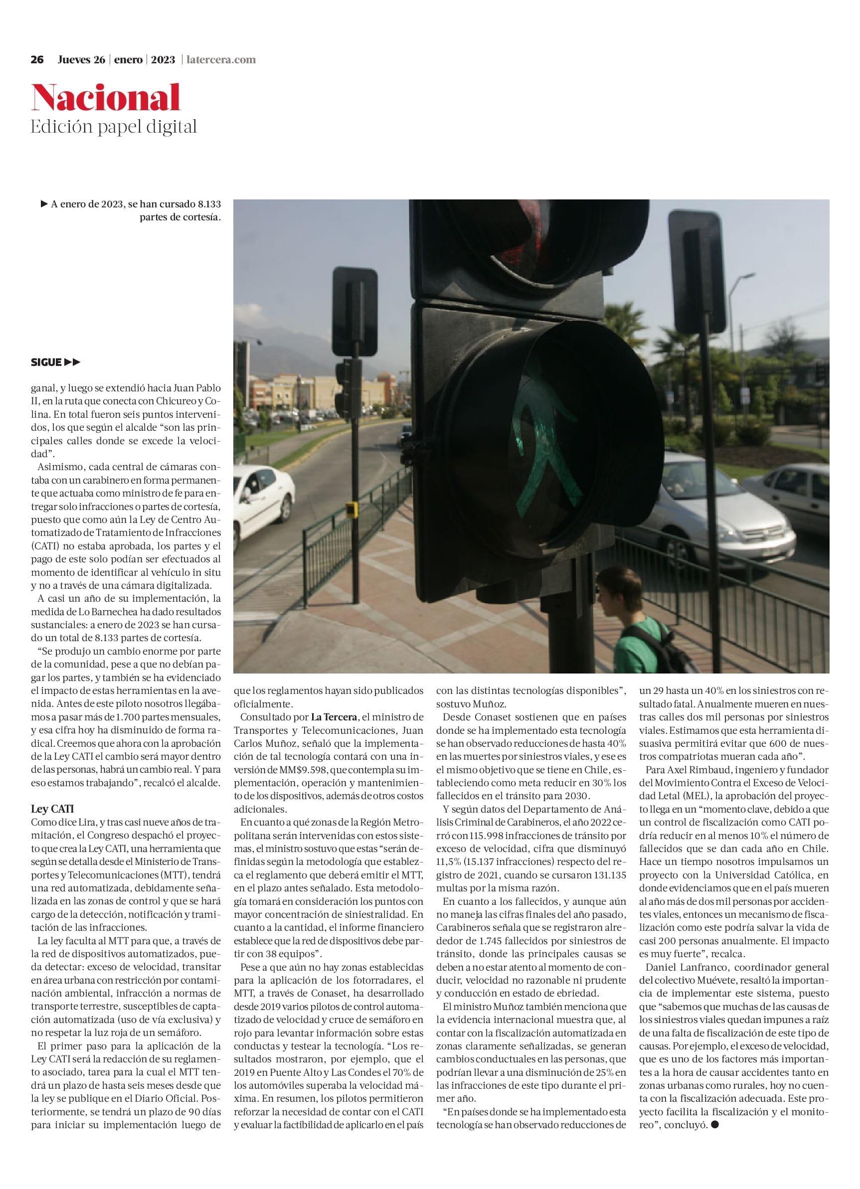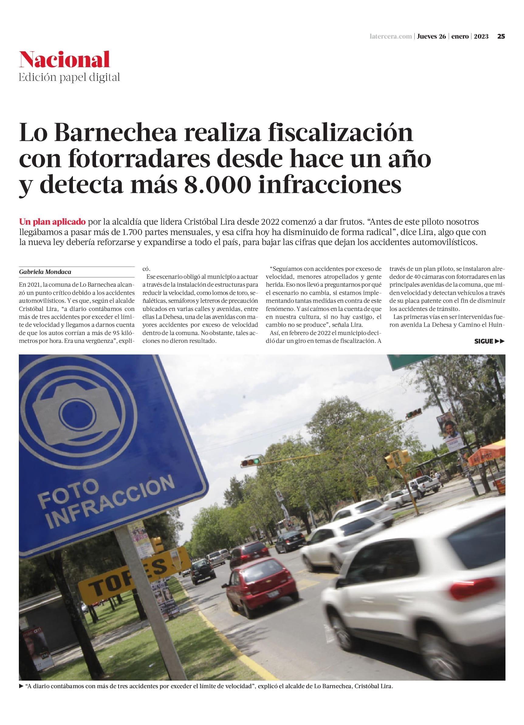 Lo Barnechea realiza fiscalización con fotorradares desde hace un año y detecta más 8. 000 infracciones 26-01-2023 La Tercera |