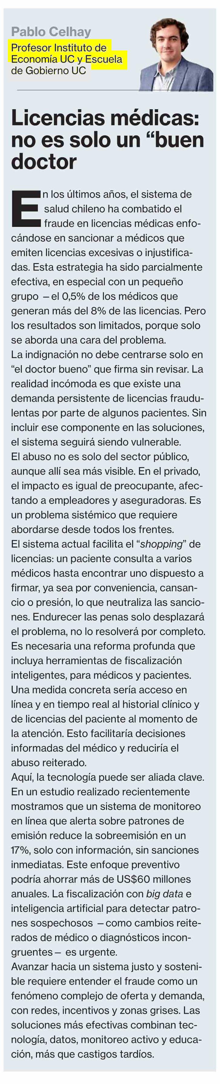 | Título: | COLUMNAS DE OPINIÓN: Licencias médicas: no es solo un “buen doctor |