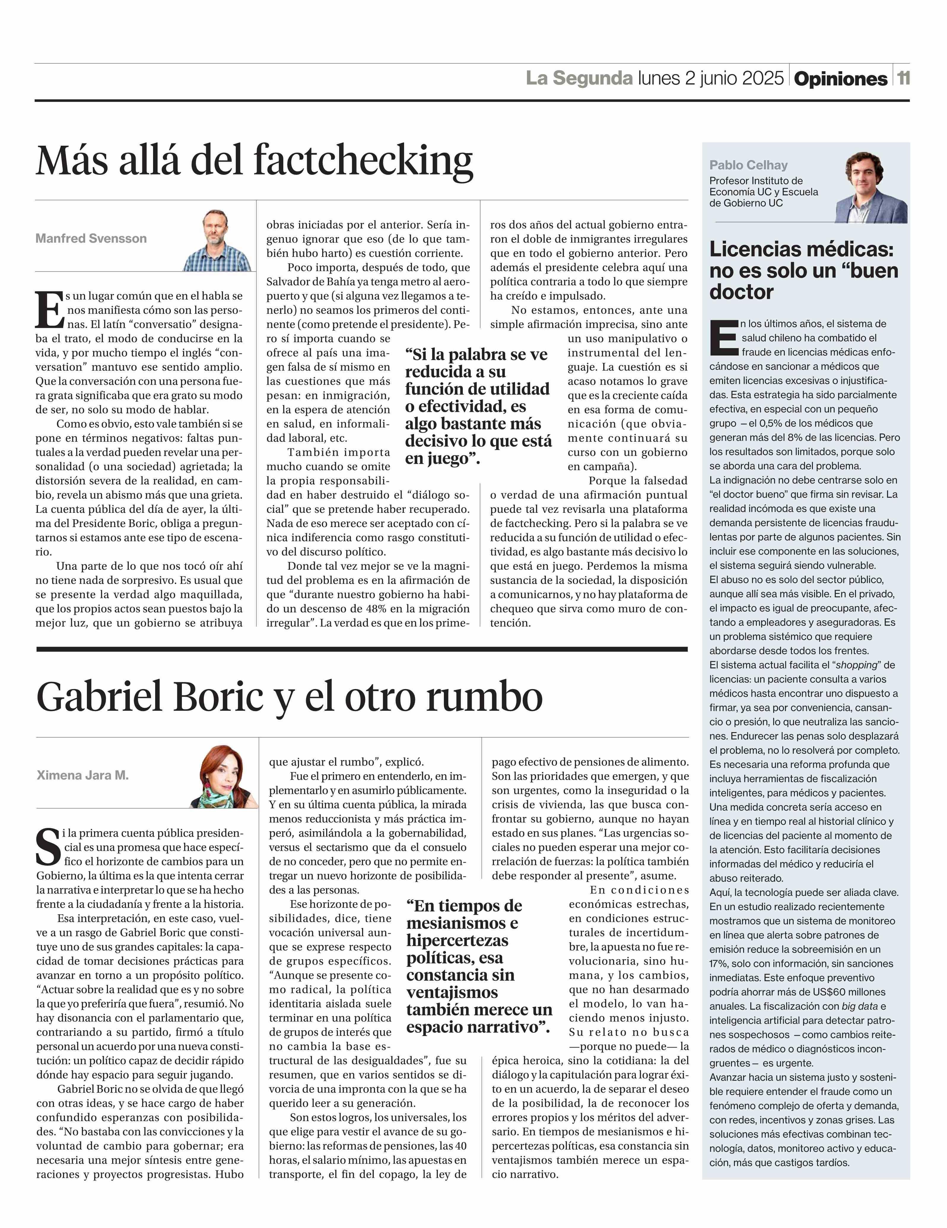 COLUMNAS DE OPINIÓN: Licencias médicas: no es solo un “buen doctor 02-06-2025 La Segunda |