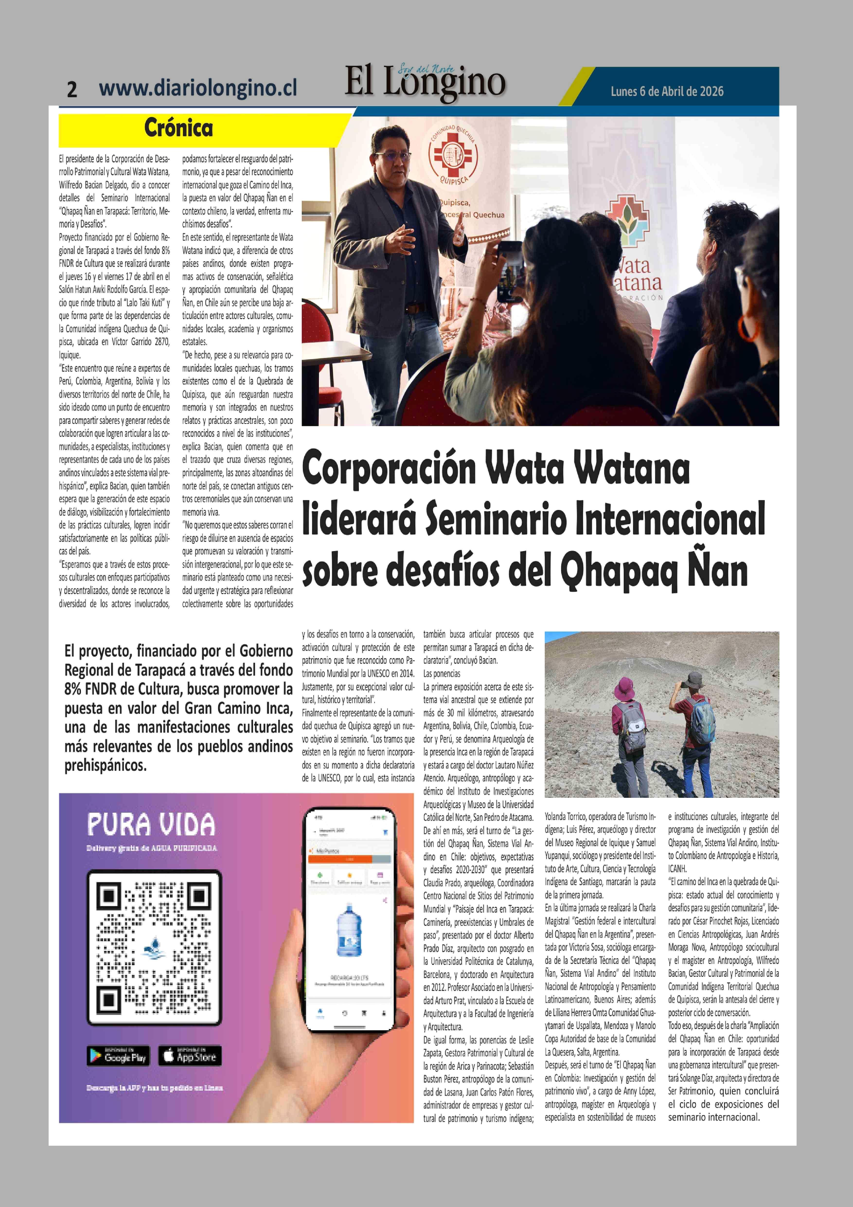 Corporación Wata Watana liderará Seminario Internacional sobre desafíos del Qhapaq Nan 06-04-2026 El Longino |