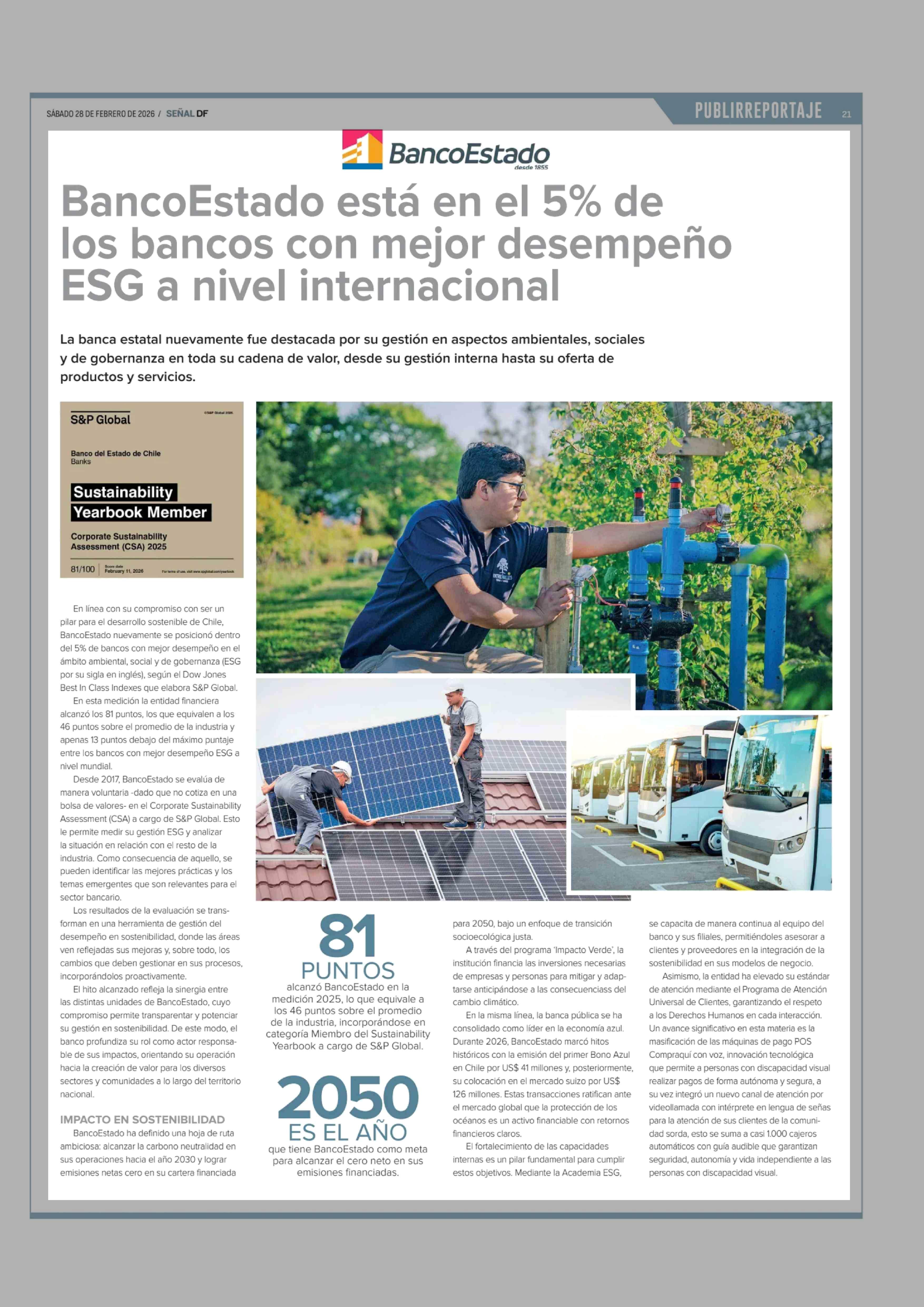 Título: BancoEstado está en el 5% de los bancos con mejor desempeño ESG a nivel internacional