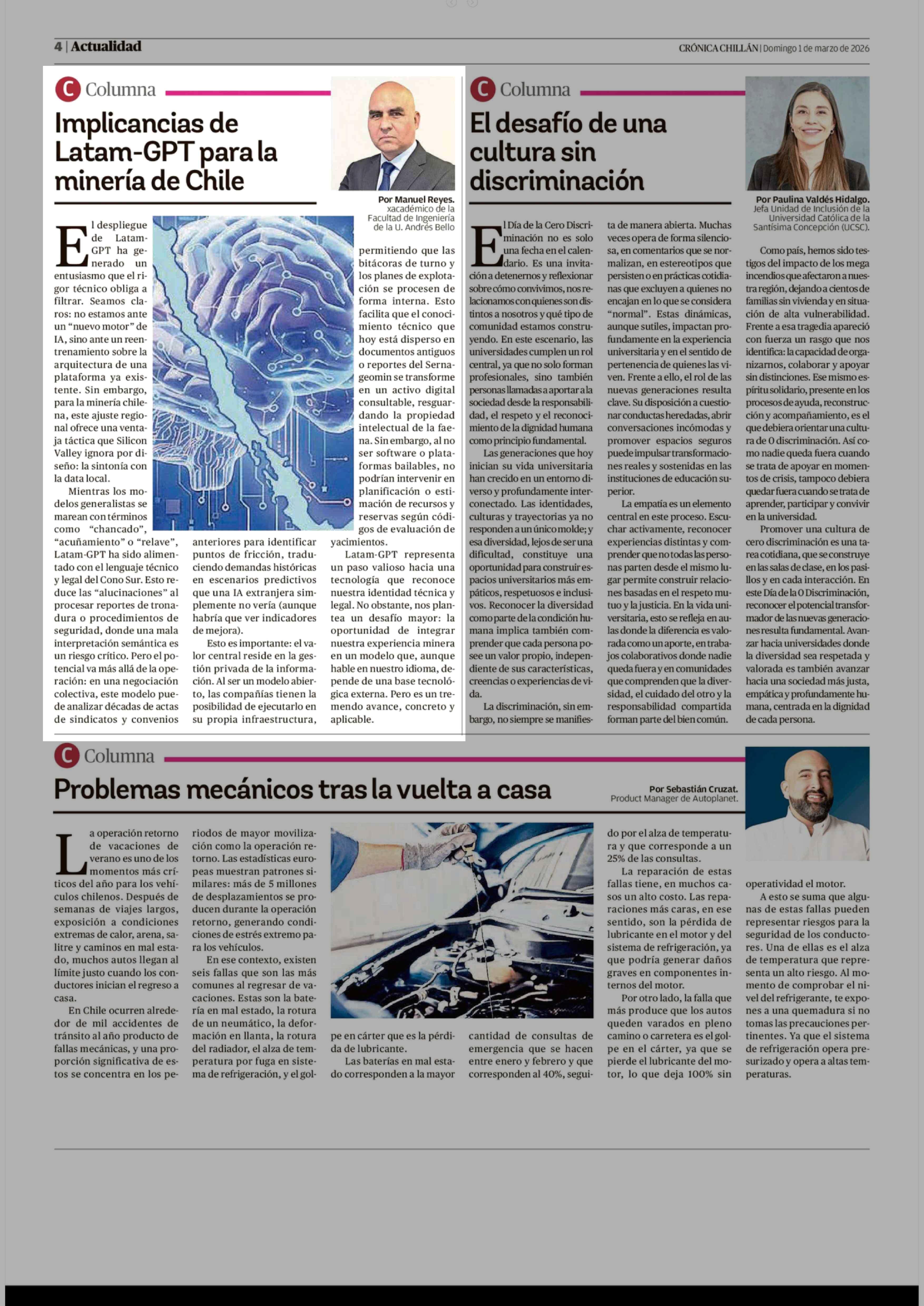 Columnas de Opinión: Implicancias de Latam-GPT para la minería de Chile 01-03-2026 Crónica de Chillán |
