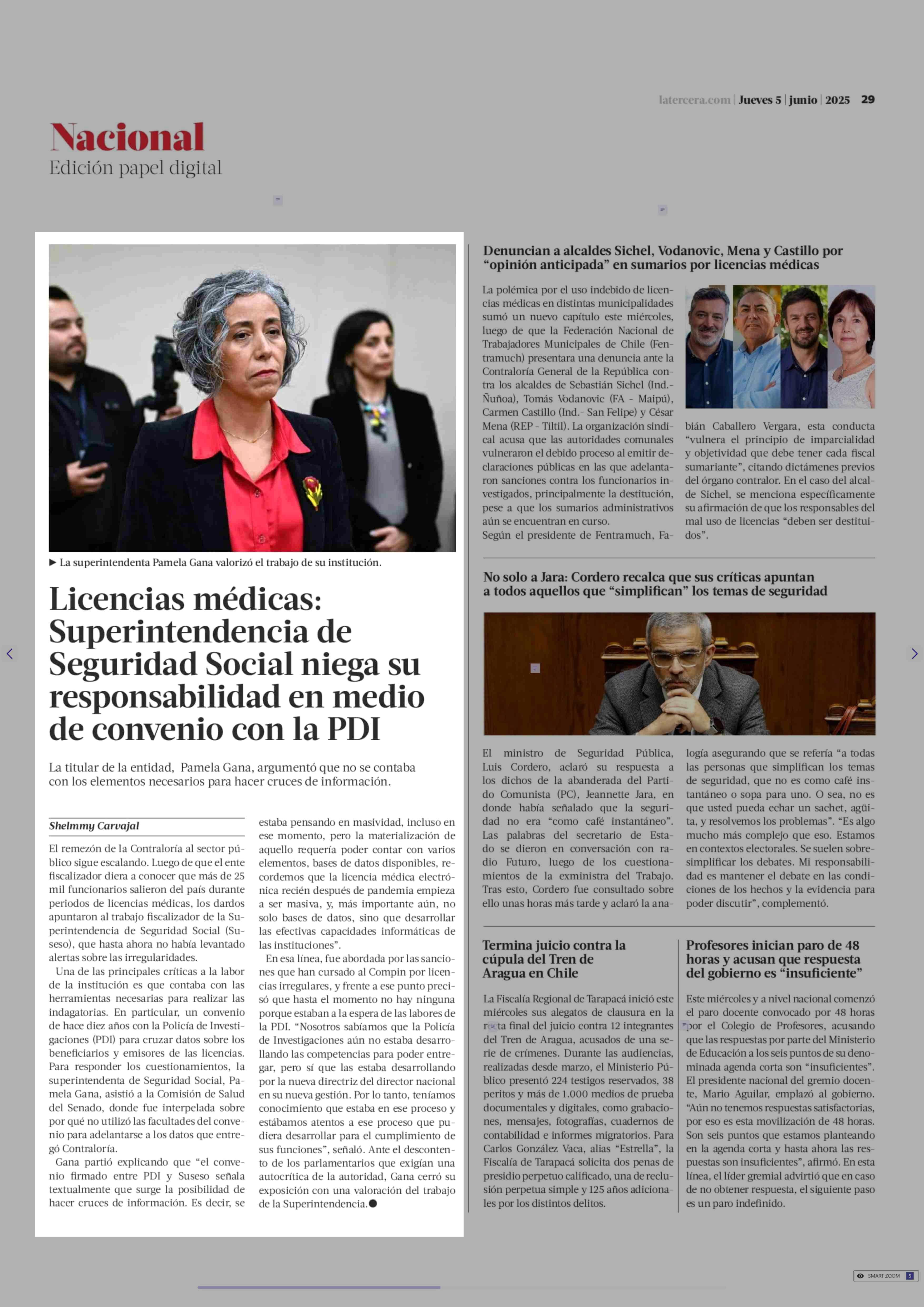Licencias médicas: Superintendencia de Seguridad Social niega su responsabilidad en medio de convenio con la PDI 05-06-2025 La Tercera |
