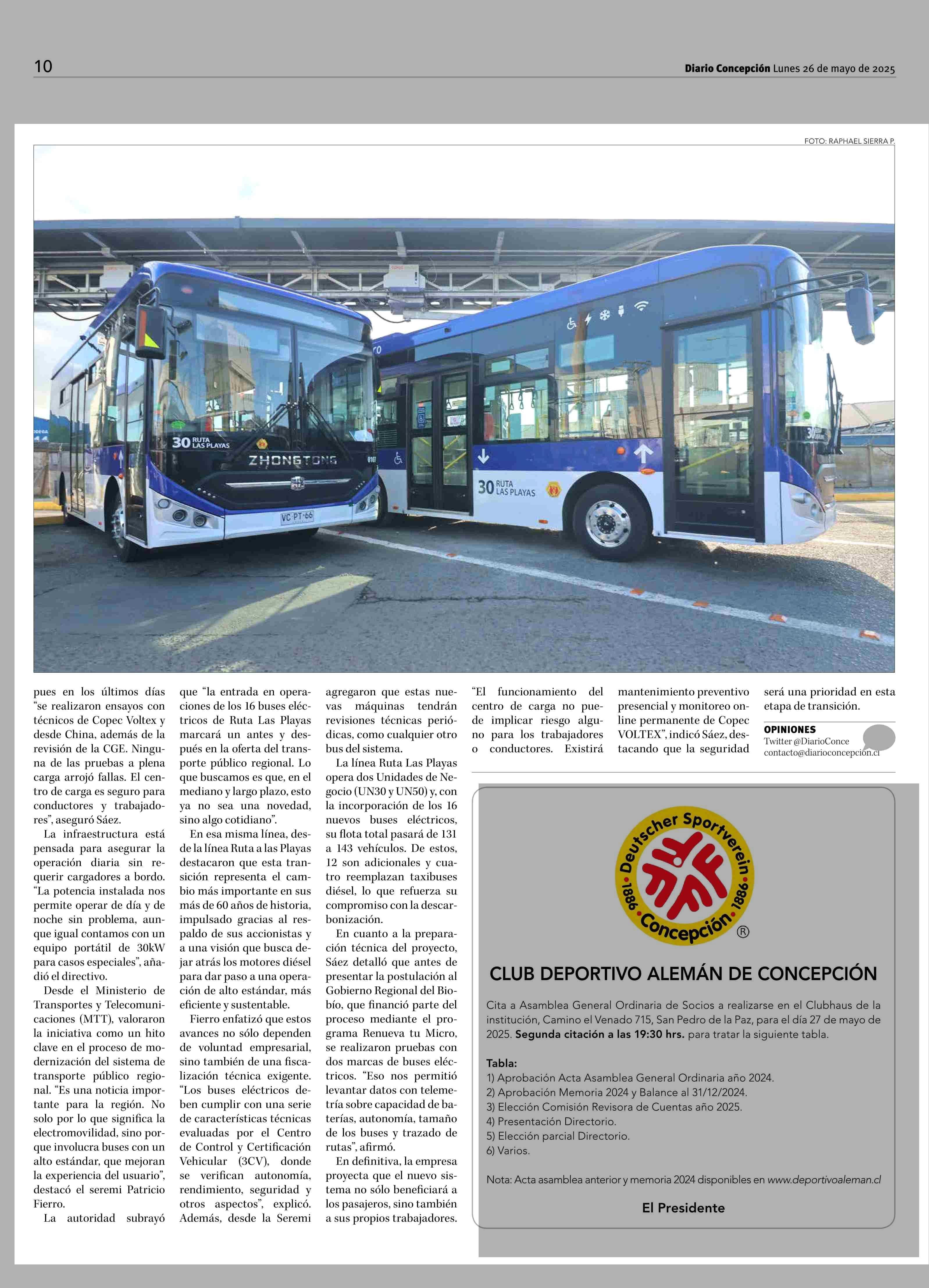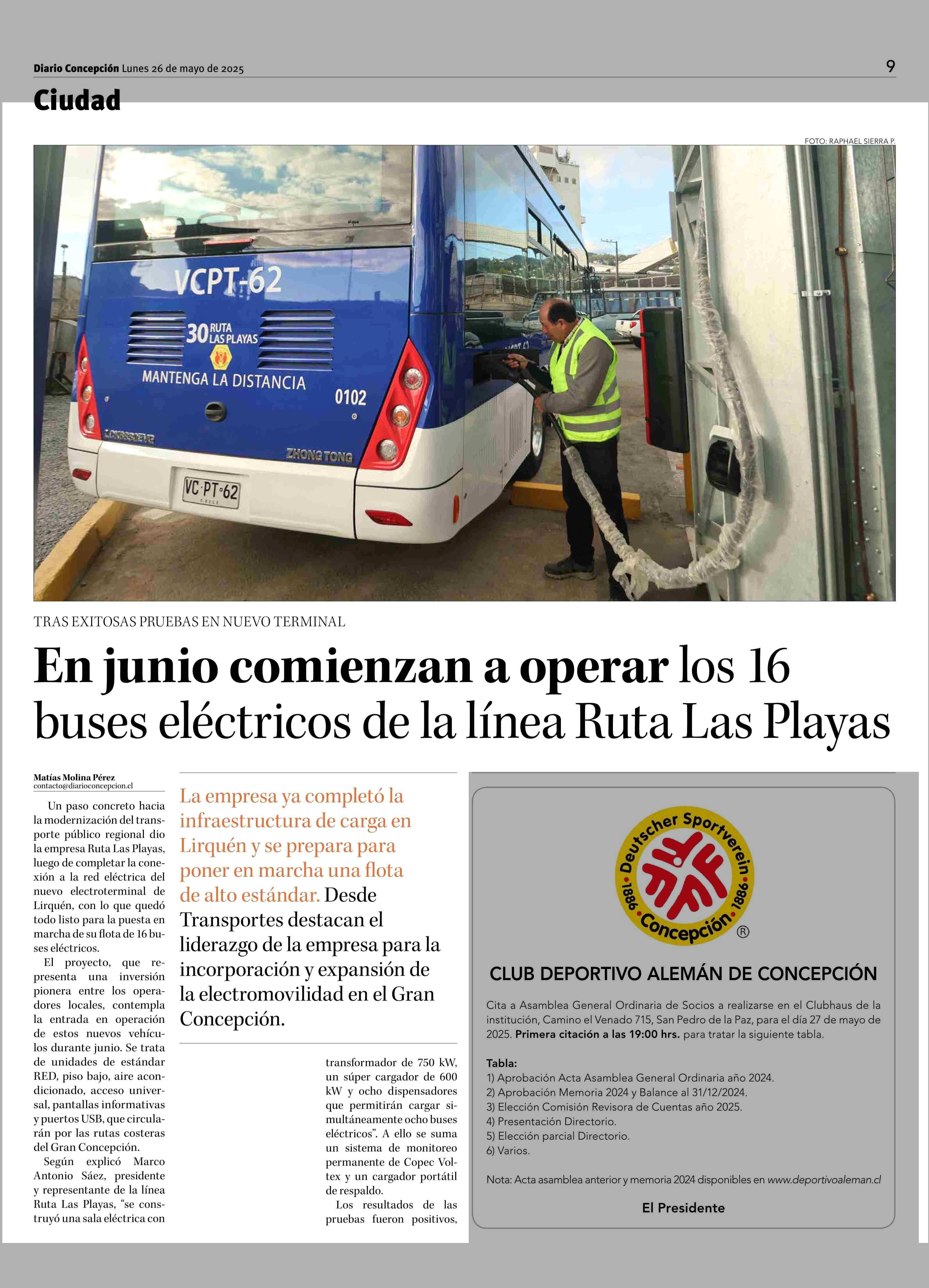 En junio comienzan a operar los 16 buses eléctricos de la línea Ruta Las Playas 26-05-2025 Diario Concepción |