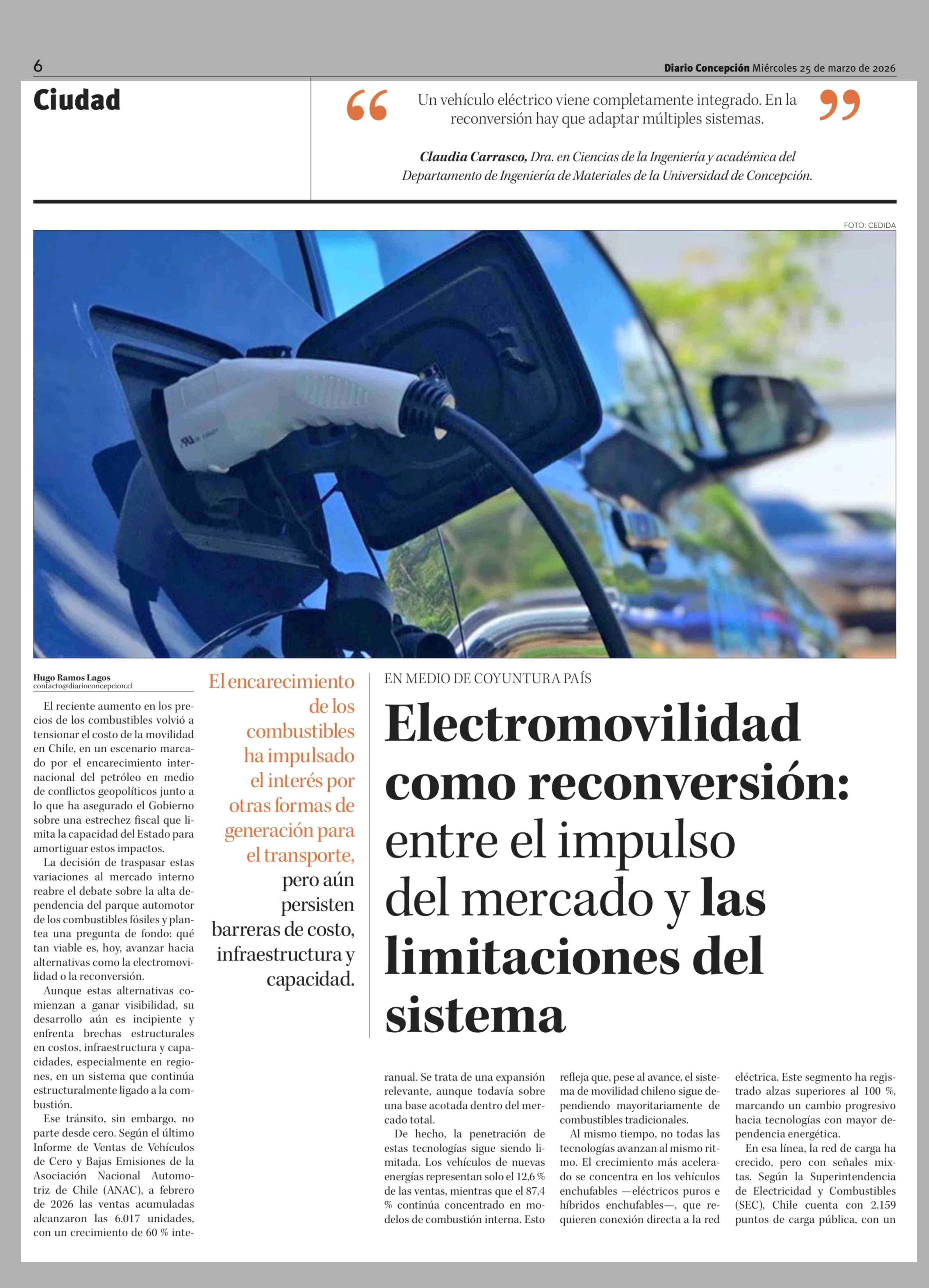 Electromovilidad como reconversión: entre el impulso del mercado y las limitaciones del sistema 25-03-2026 Diario Concepción |