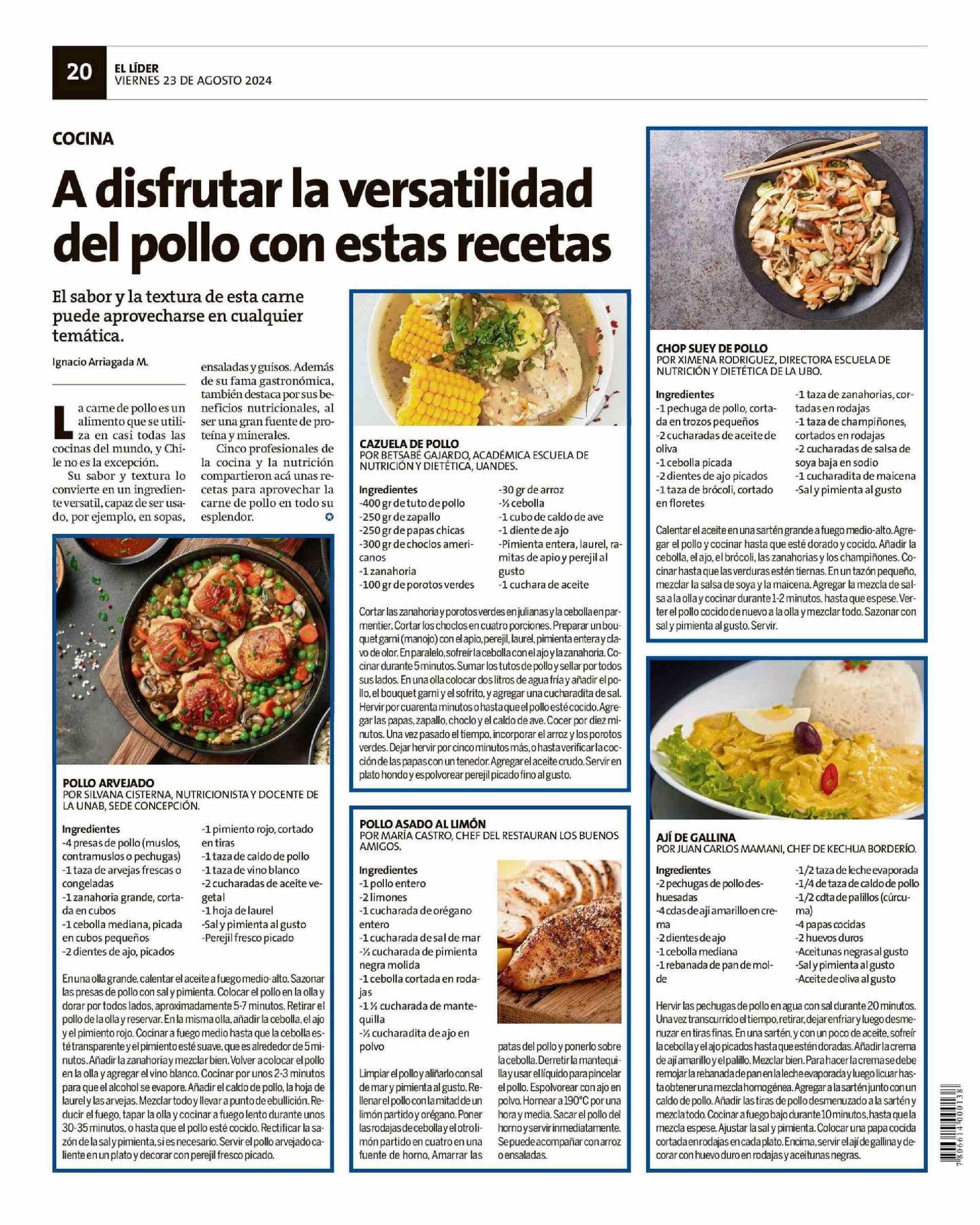 A disfrutar la versatilidad del pollo con estas recetas 23-08-2024 El Líder |