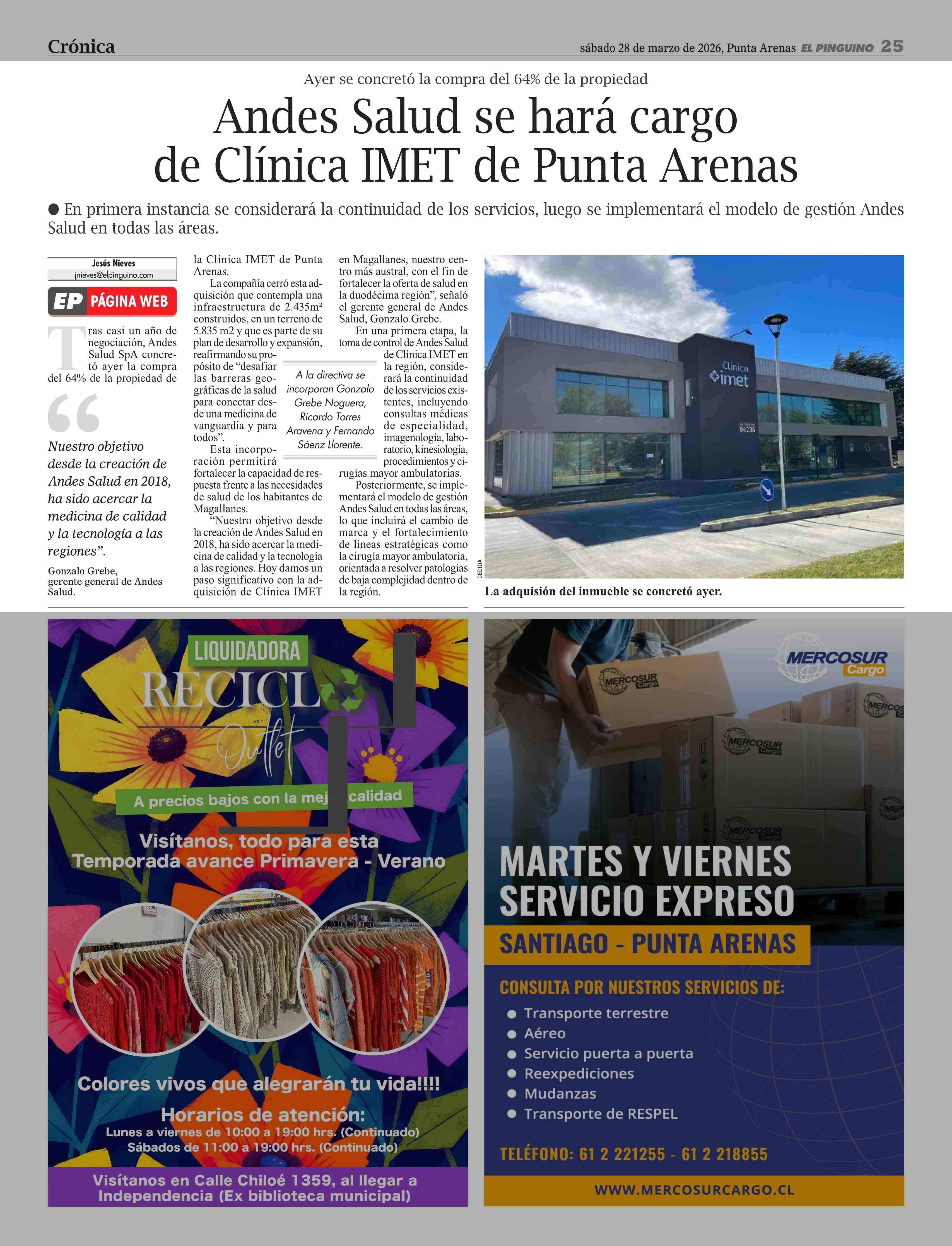 Título: Andes Salud se hará cargo de Clínica IMET de Punta Arenas