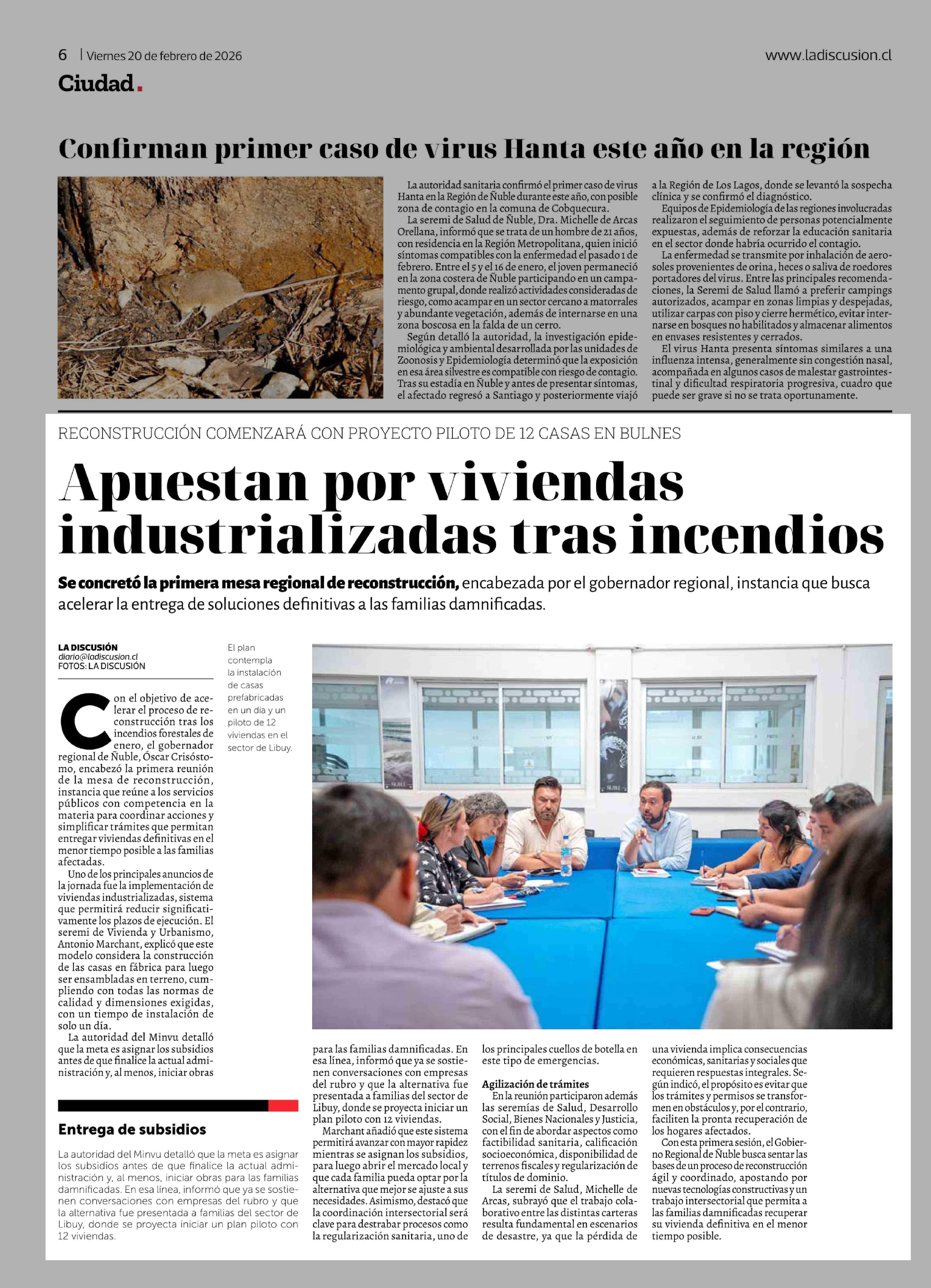 | Fecha: | 20-02-2026 | Sector: | Noticia general | Región: | Región del Ñuble |