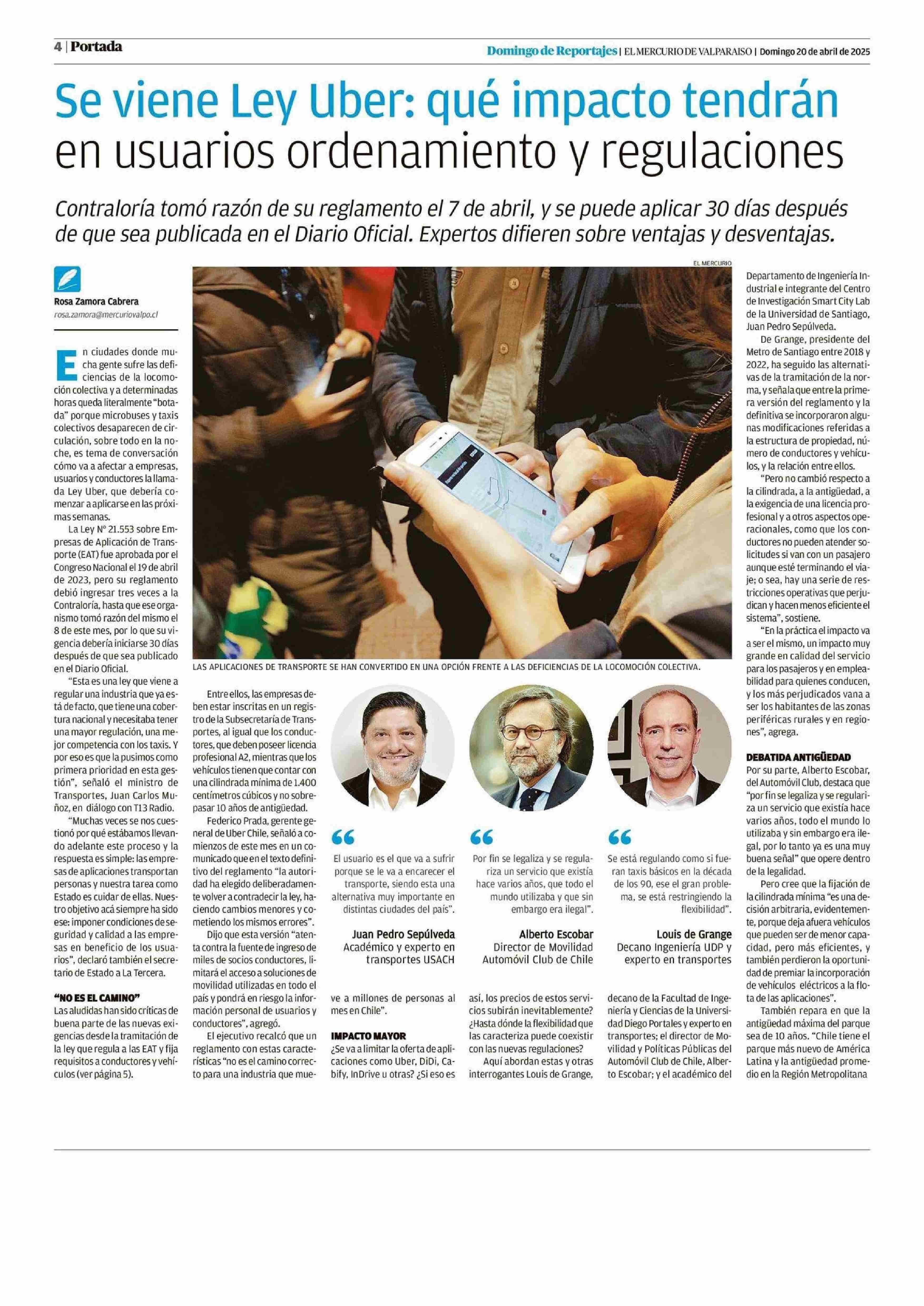 Se viene Ley Uber: qué impacto tendrán en usuarios ordenamiento y regulaciones 20-04-2025 El Mercurio de Valparaíso |