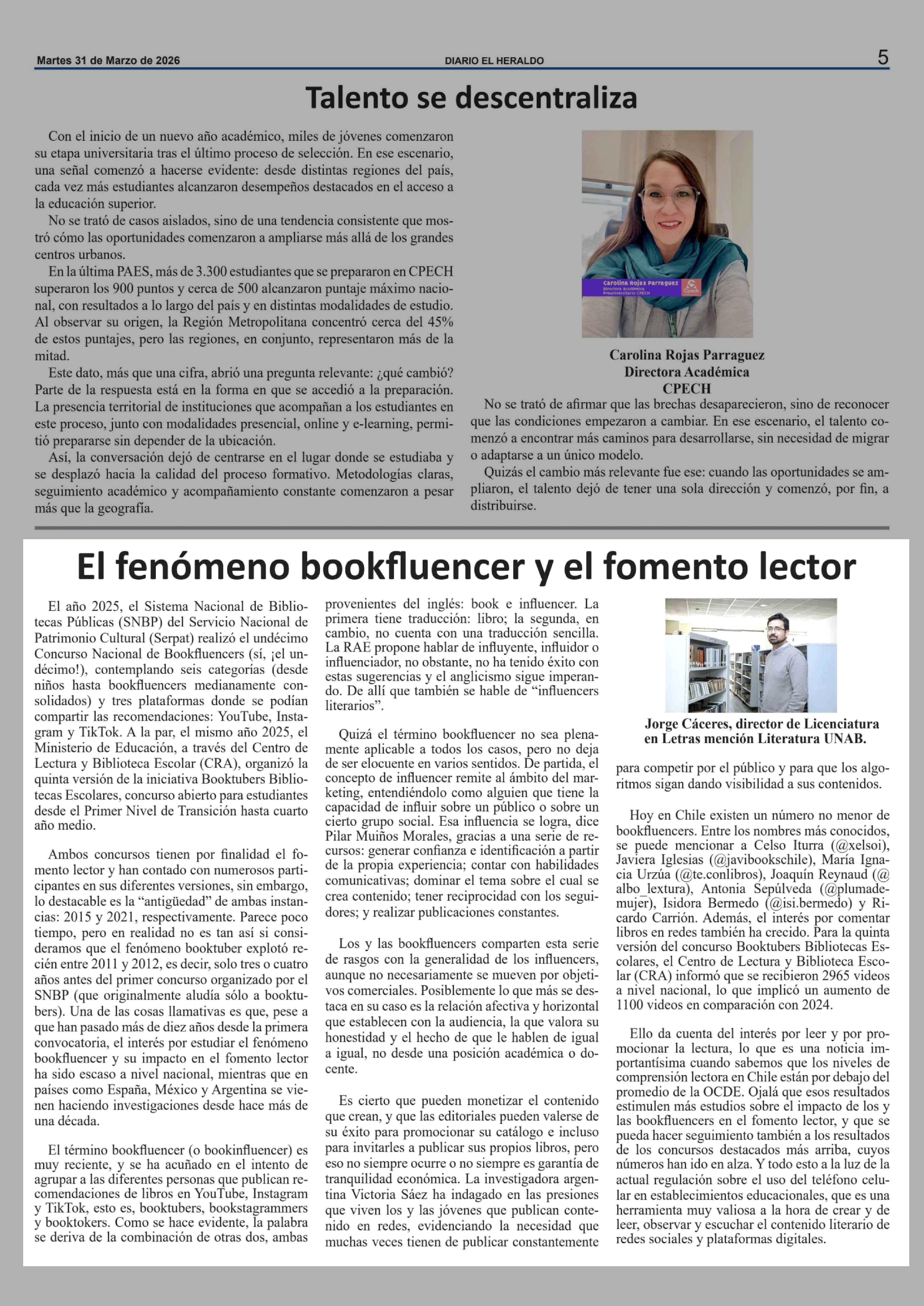 Columnas de Opinión: El fenómeno bookfluencer y el fomento lector 31-03-2026 El Heraldo |