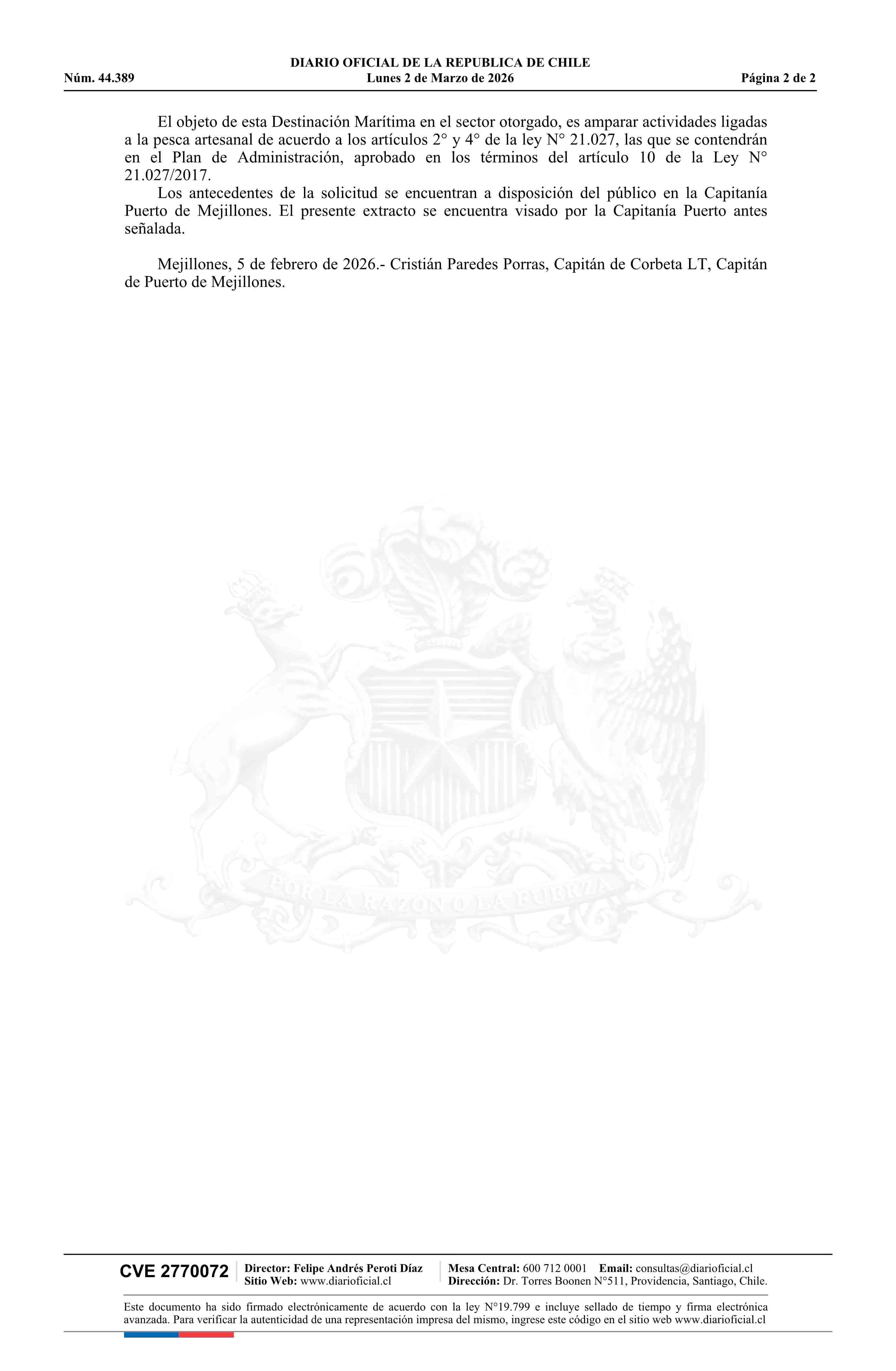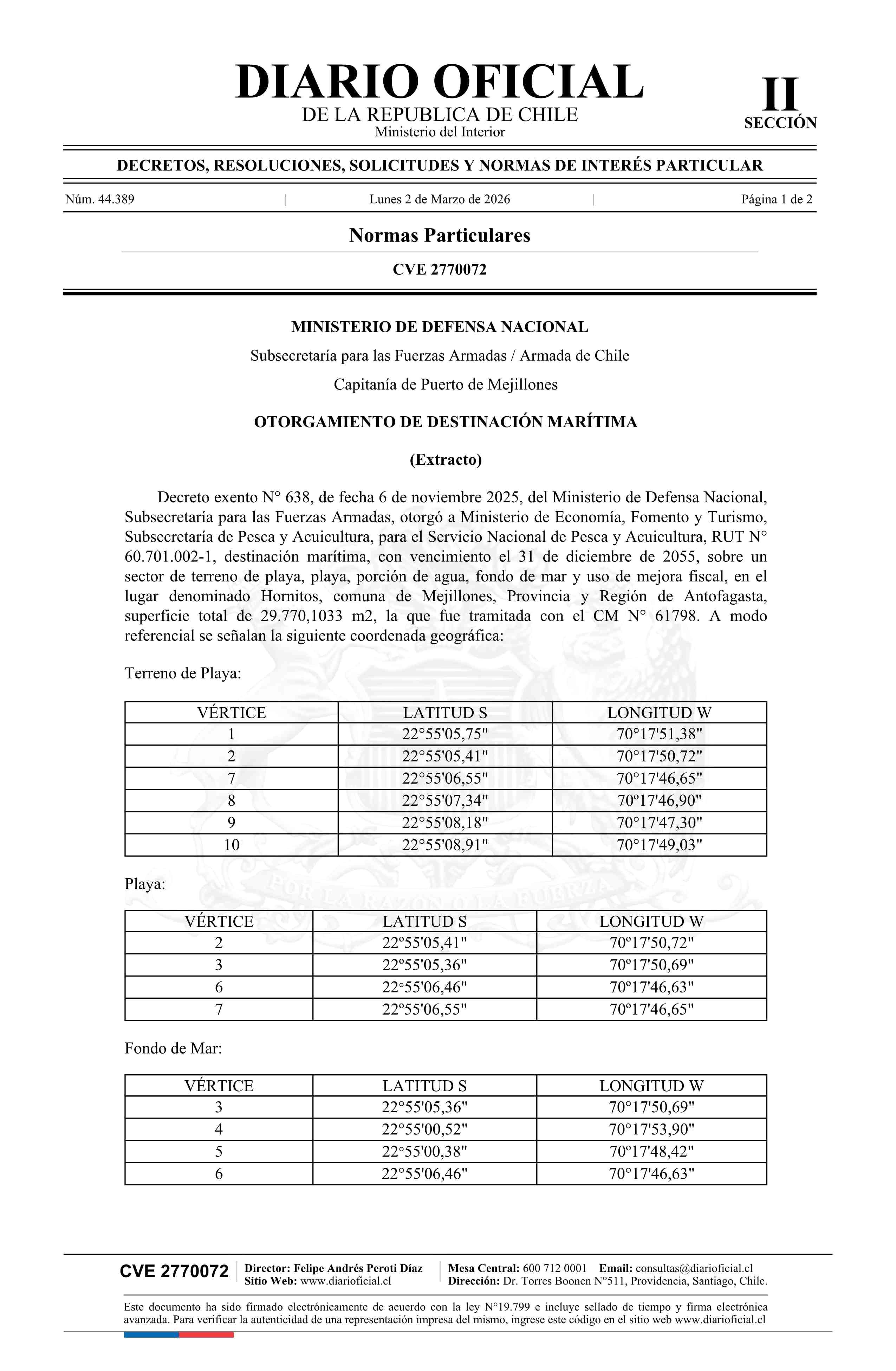Extracto de decreto exento número 638, de 2025.- Otorgamiento de destinación marítima 02-03-2026 Diario Oficial Edición Electrónica |