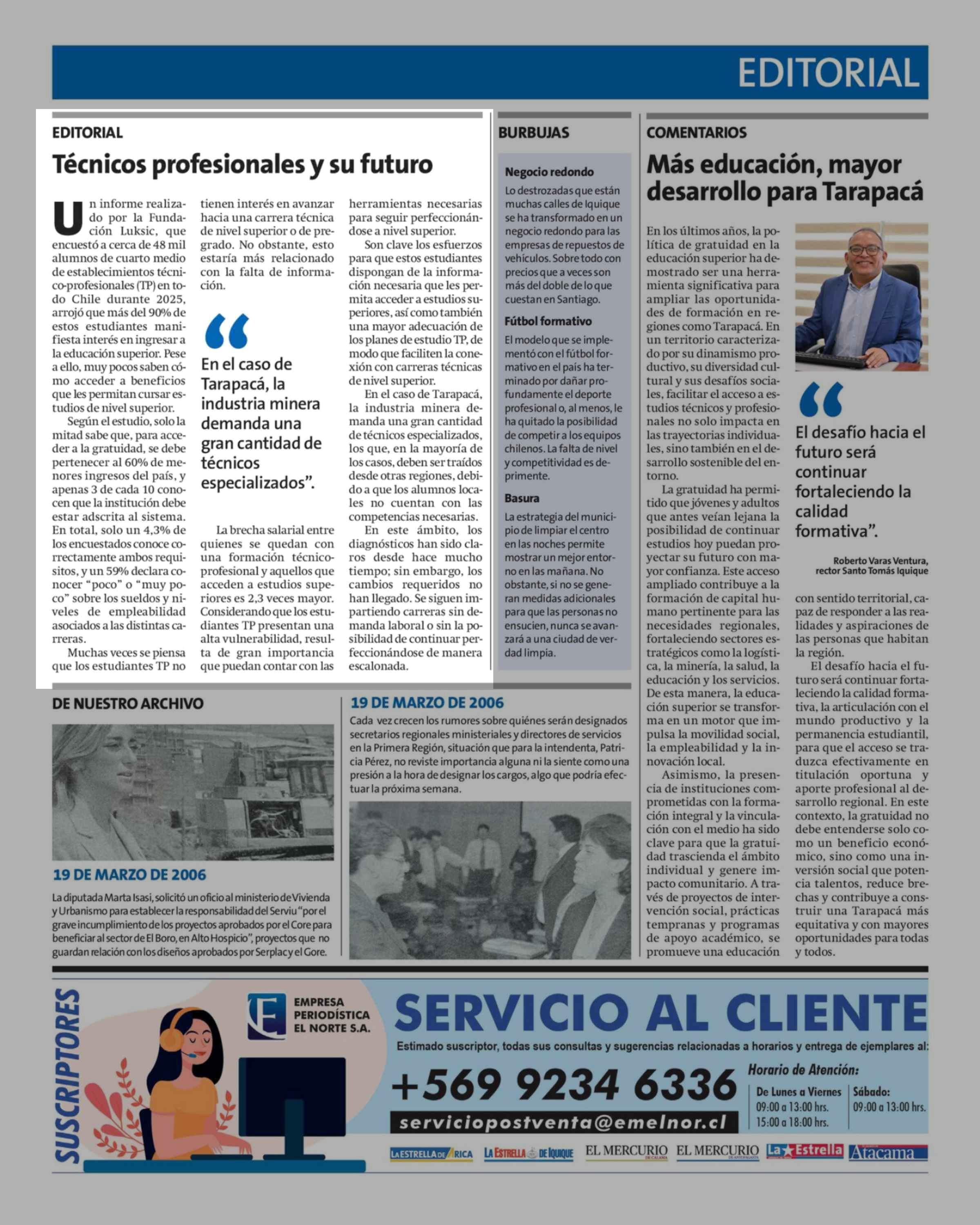 Editorial: Técnicos profesionales y su futuro 19-03-2026 La Estrella de Iquique |