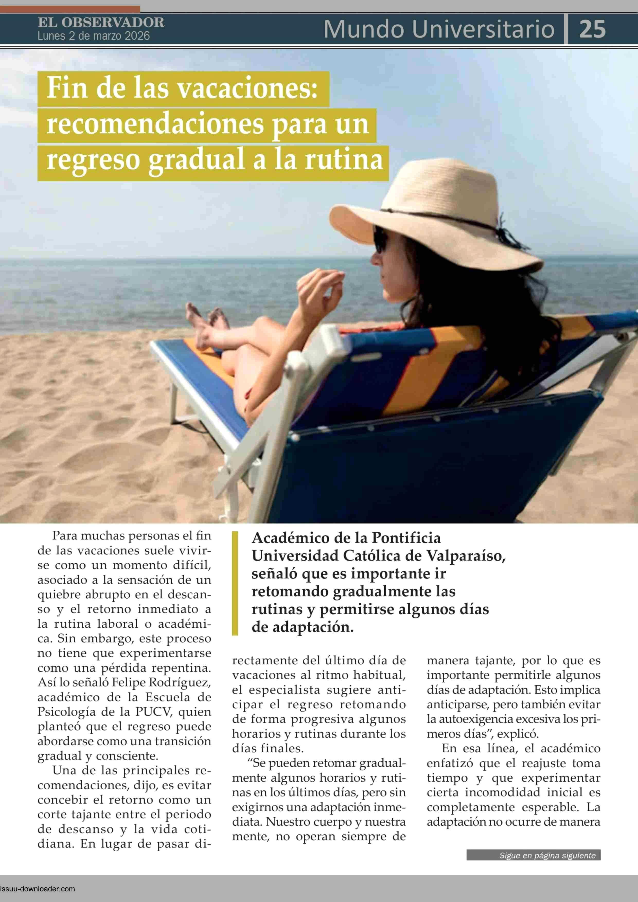 Título: Fin de las vacaciones: recomendaciones para un regreso gradual a la rutina
