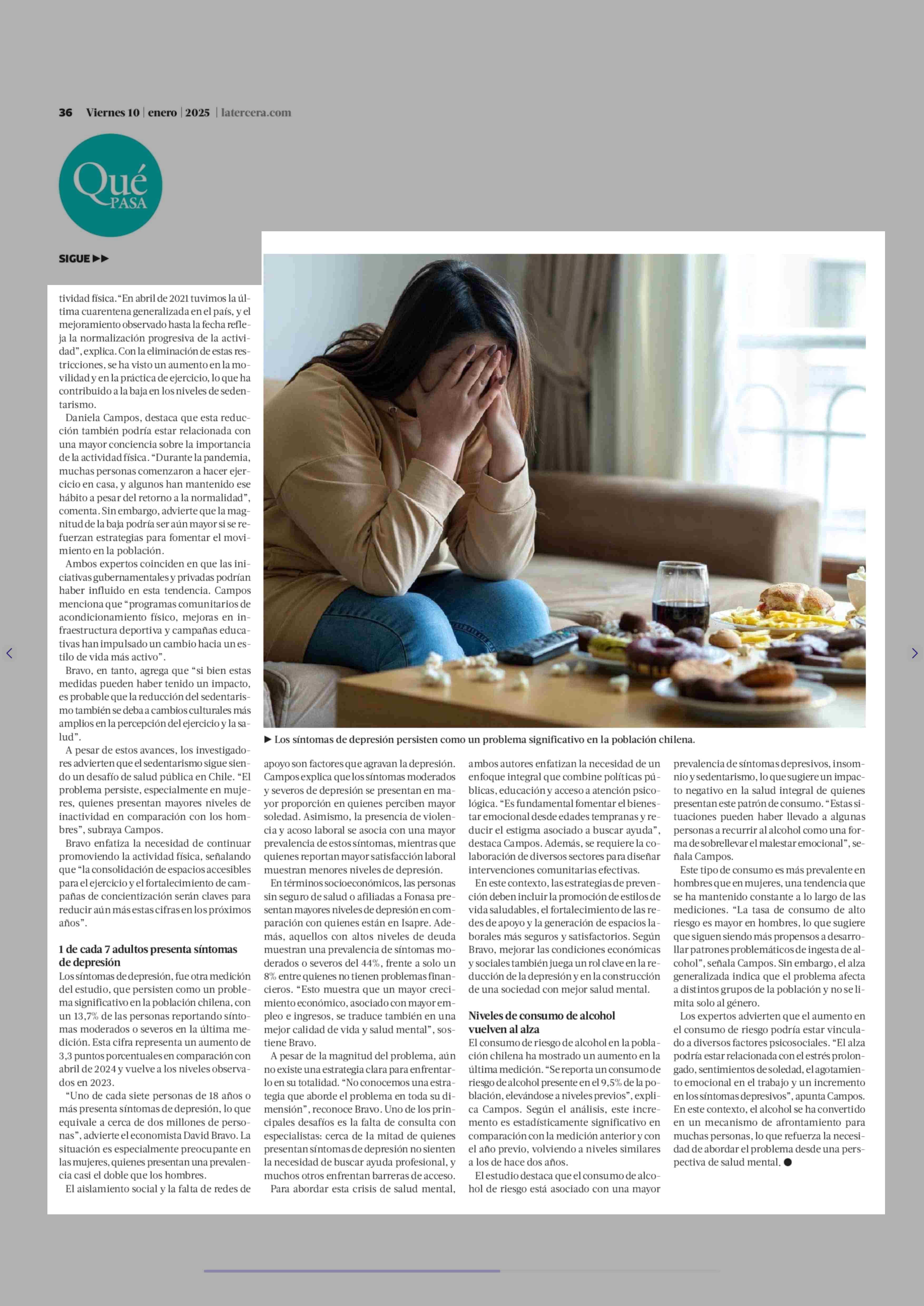 Estudio de salud mental dice que sedentarismo aumenta probabilidad de sufrir depresión 10-01-2025 La Tercera |