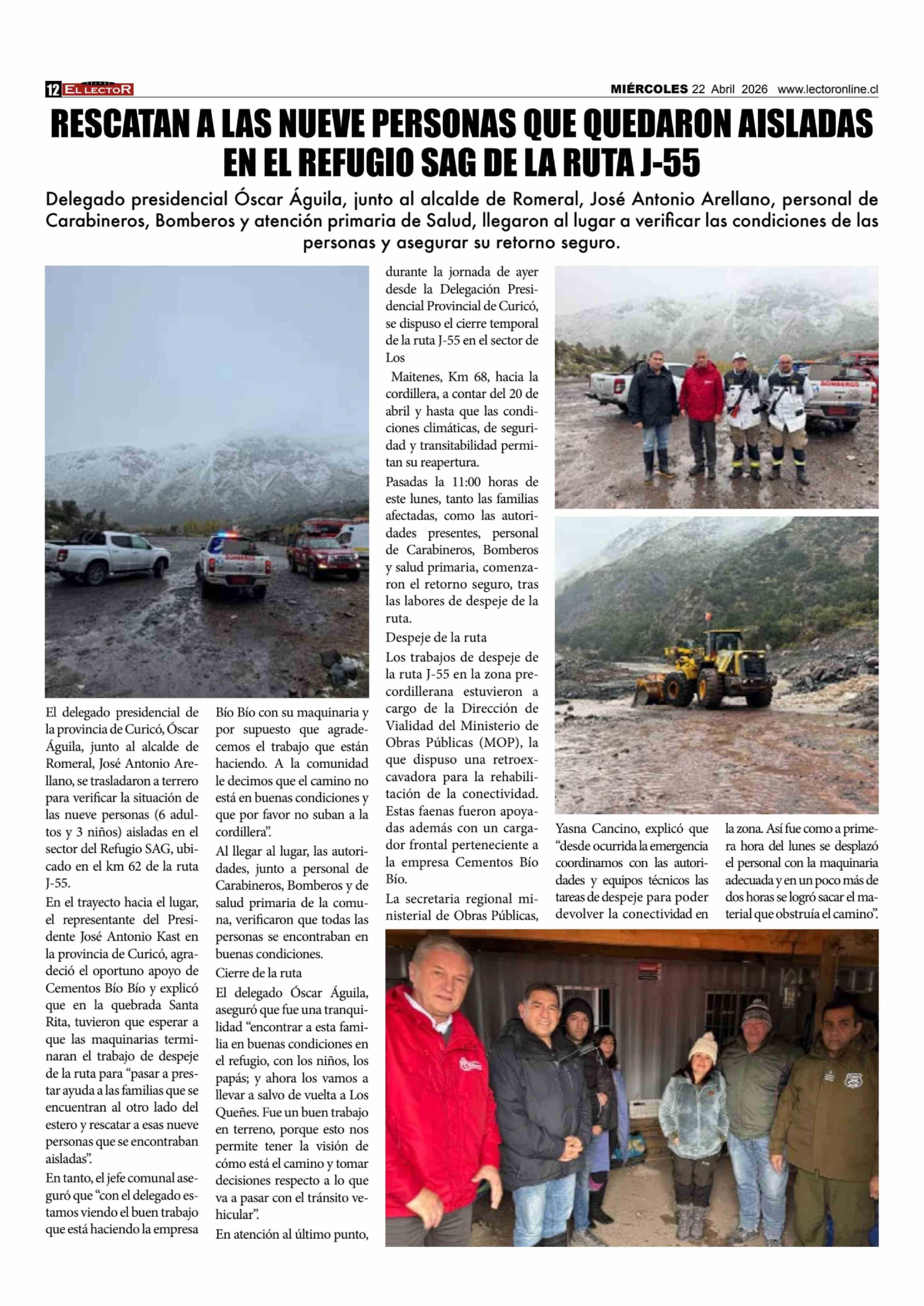 Título: RESCATAN A LAS NUEVE PERSONAS QUE QUEDARON AISLADAS EN EL REFUGIO SAG DE LA RUTA J-55