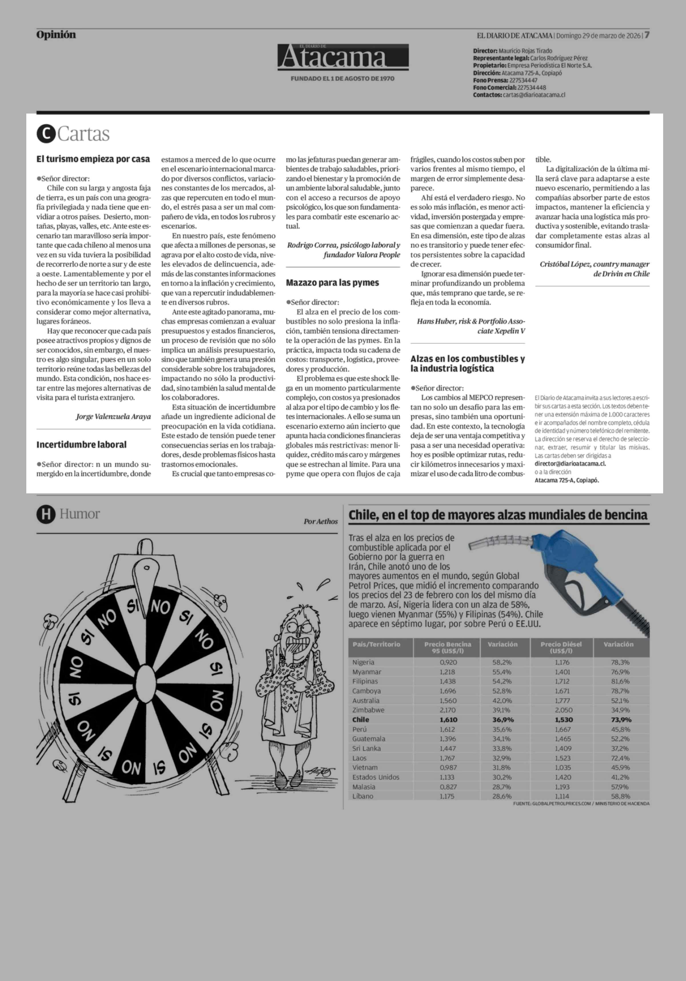 Cartas: El turismo empieza por casa 29-03-2026 El Diario de Atacama |