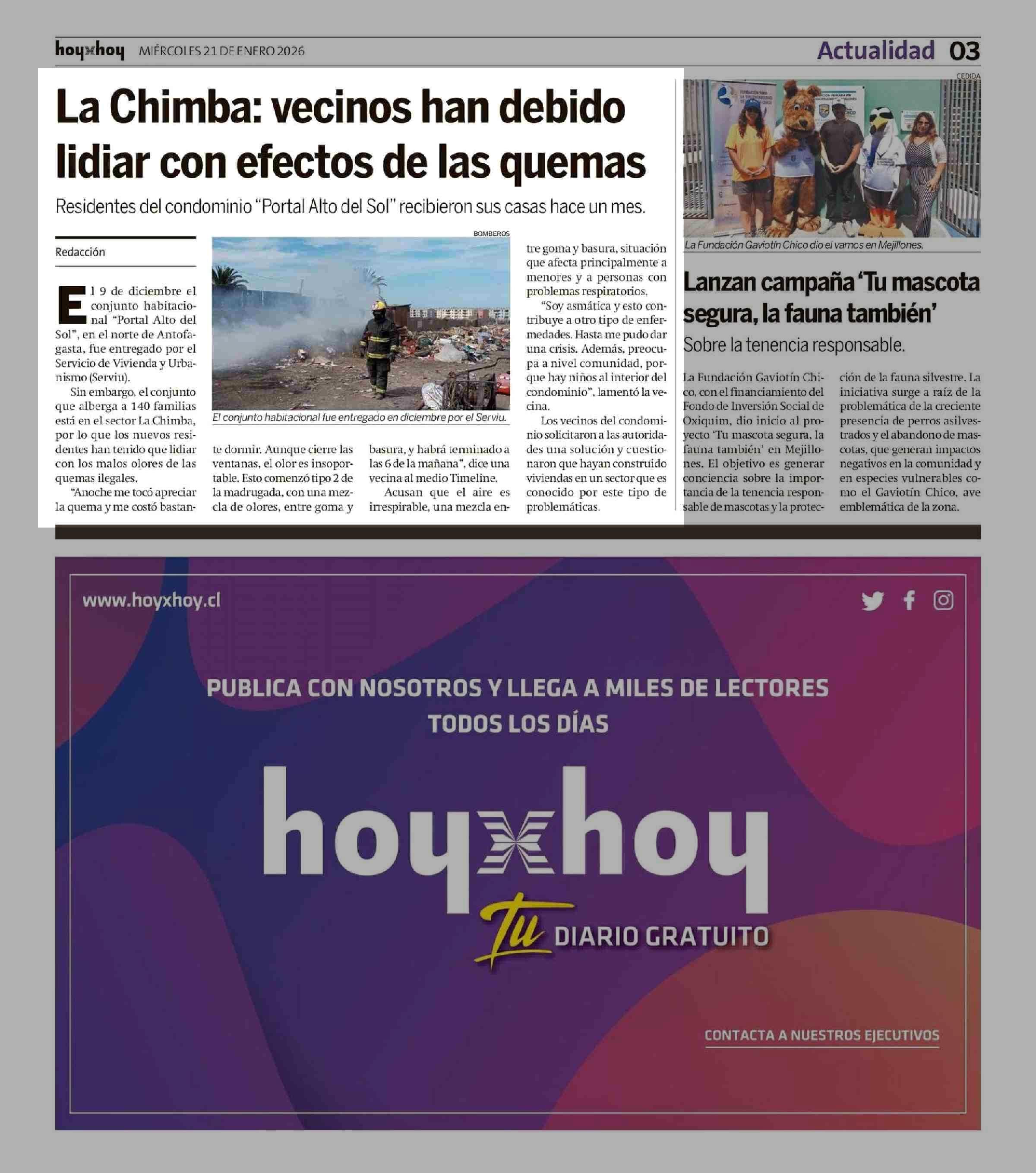 La Chimba: vecinos han debido lidiar con efectos de las quemas 21-01-2026 Hoy x Hoy Antofagasta |