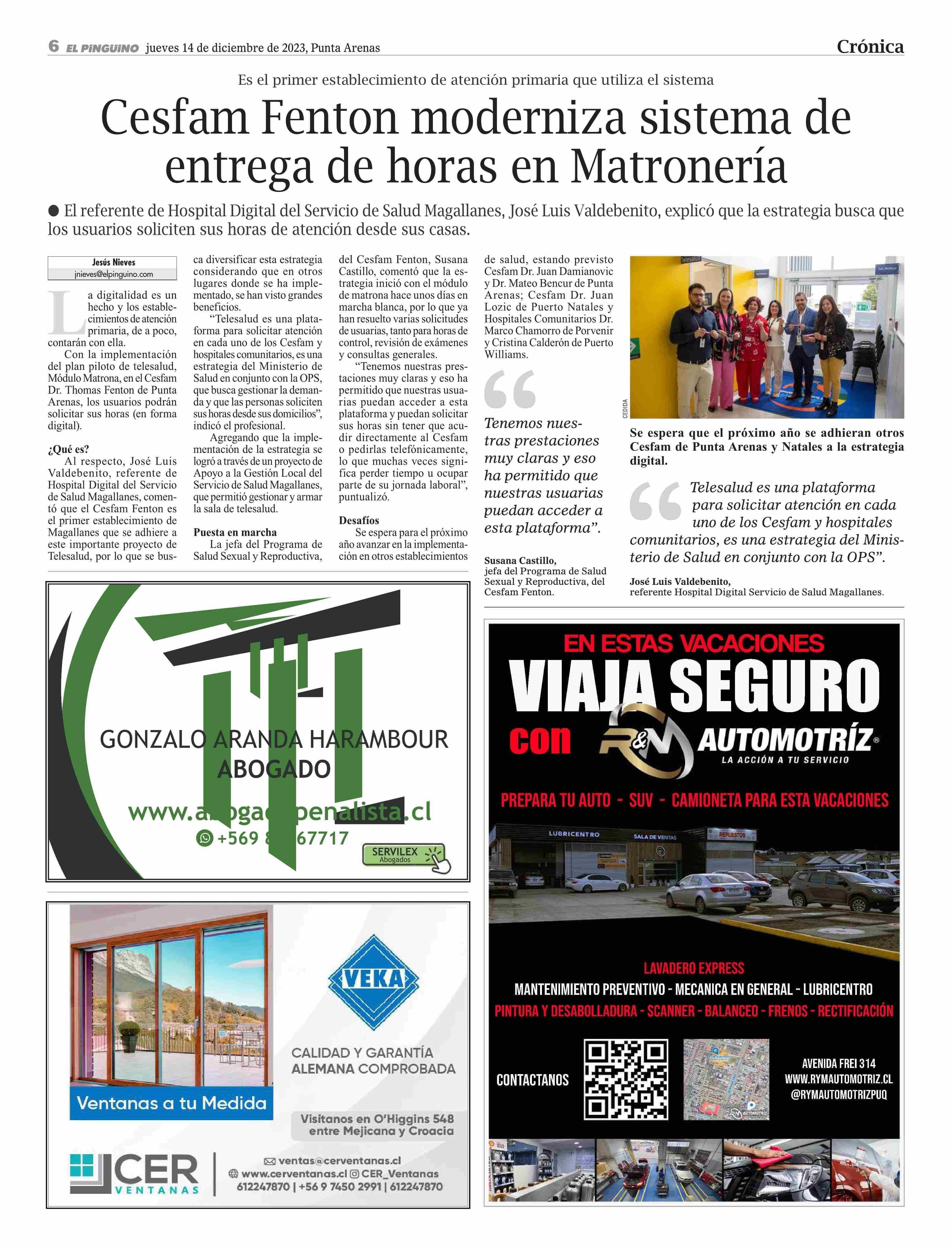 Cesfam Fenton moderniza sistema de entrega de horas en Matronería 14-12-2023 El Pingüino |
