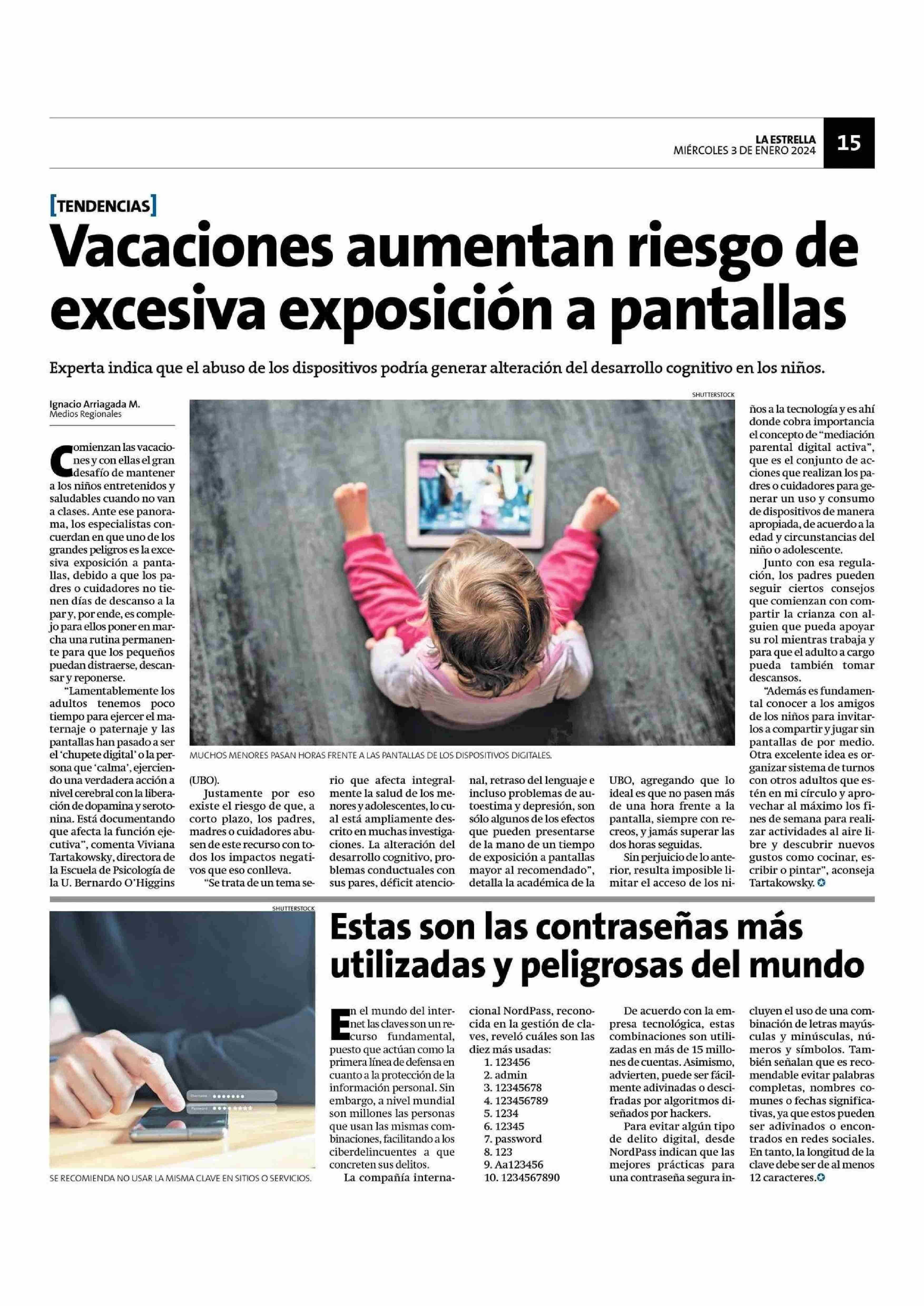 Título: Vacaciones aumentan riesgo de excesiva exposición a pantallas