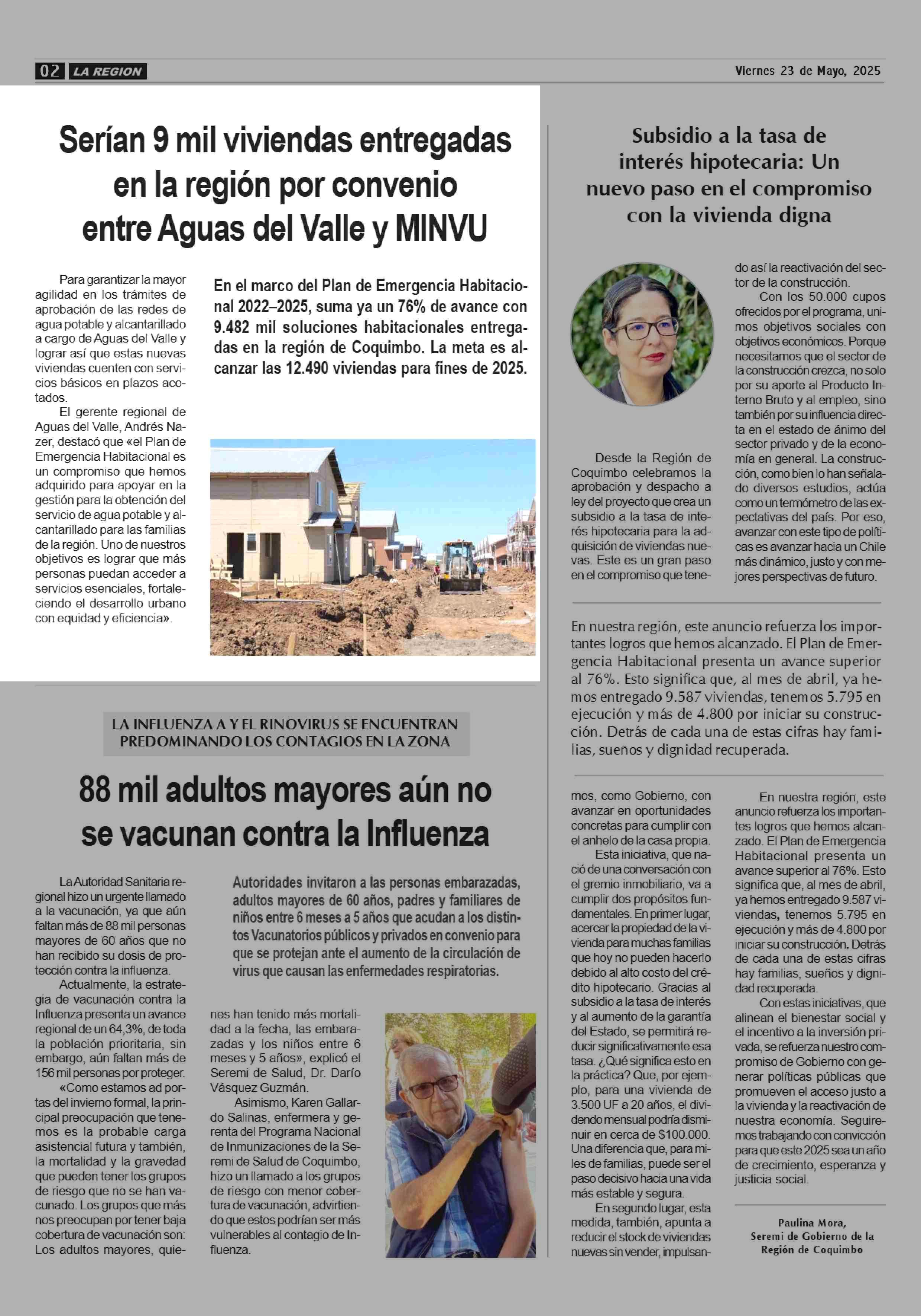 Serían 9 mil viviendas entregadas en la región por convenio entre Aguas del Valle y MINVU 23-05-2025 Diario la Región |