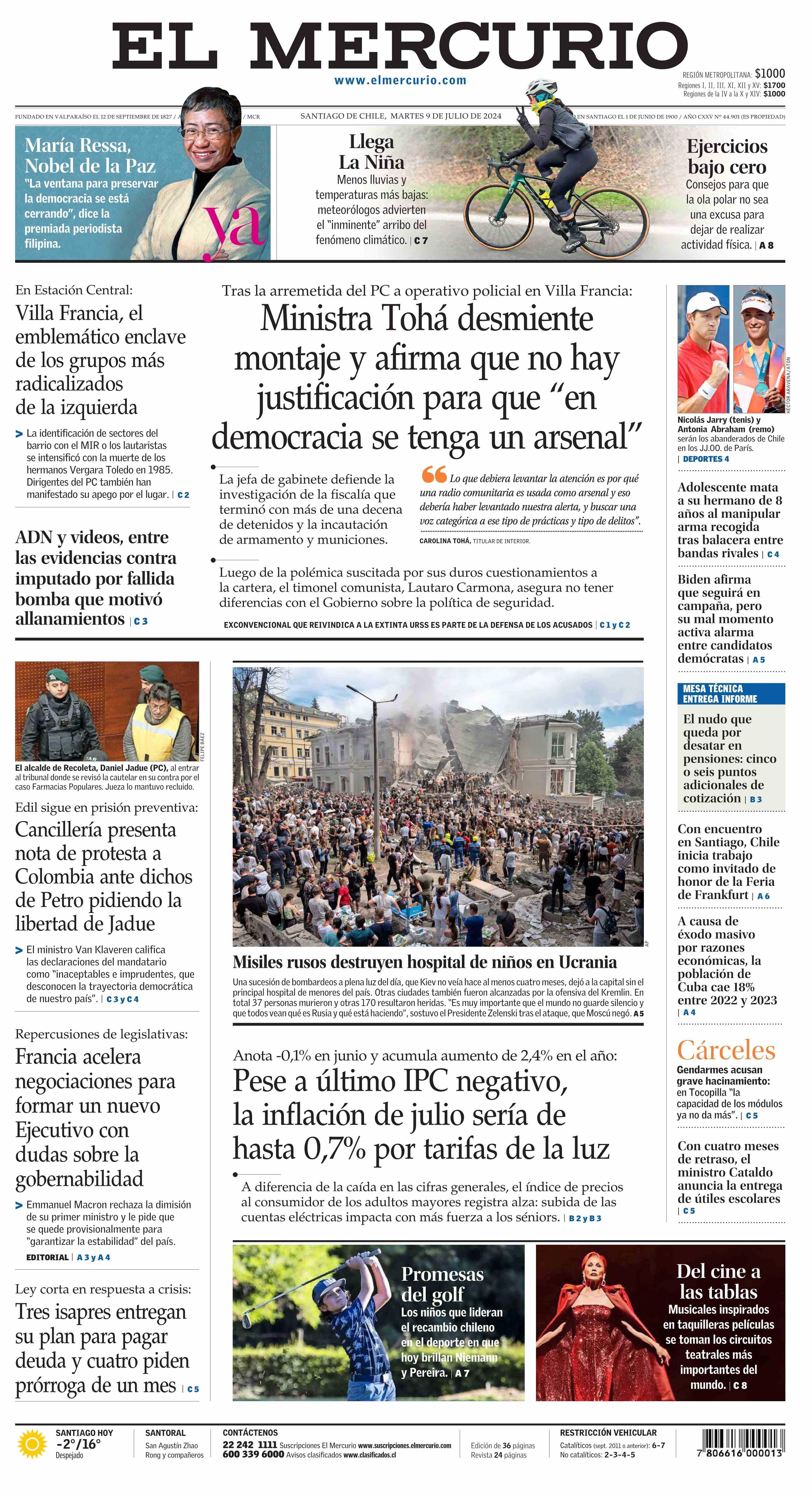 PORTADA EL MERCURIO (A) - CHILE 09-07-2024 El Mercurio |