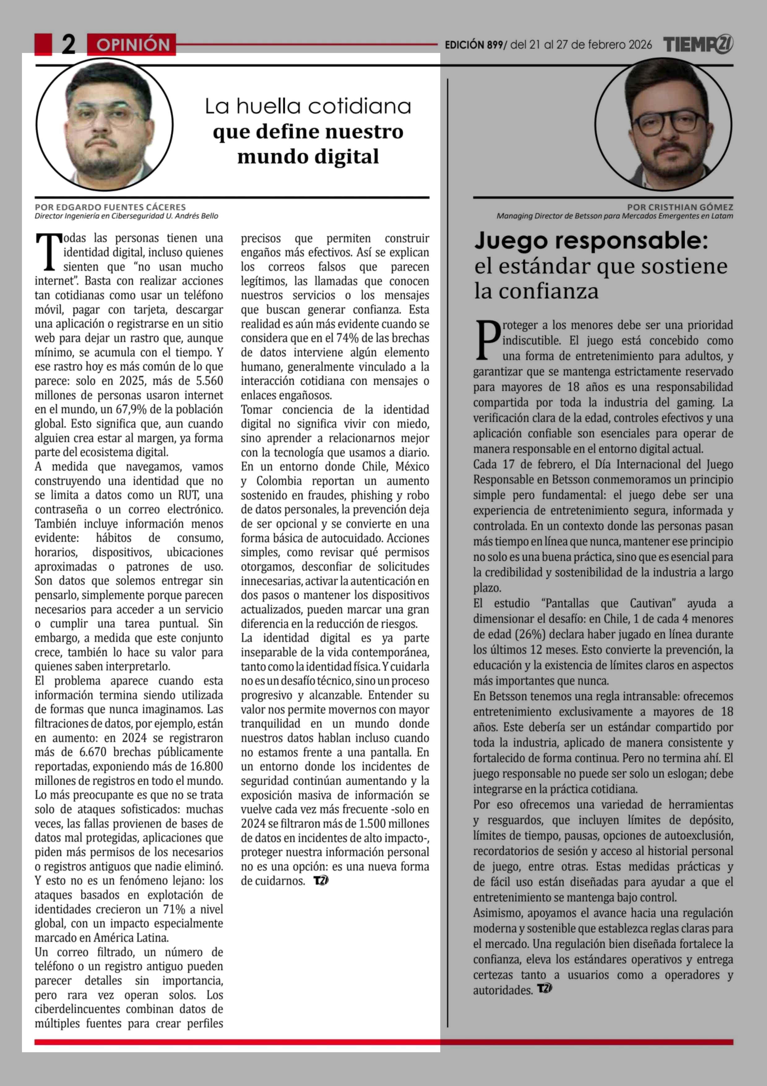 Columnas de Opinión: La huella cotidiana que define nuestro mundo digital 21-02-2026 Tiempo 21 |