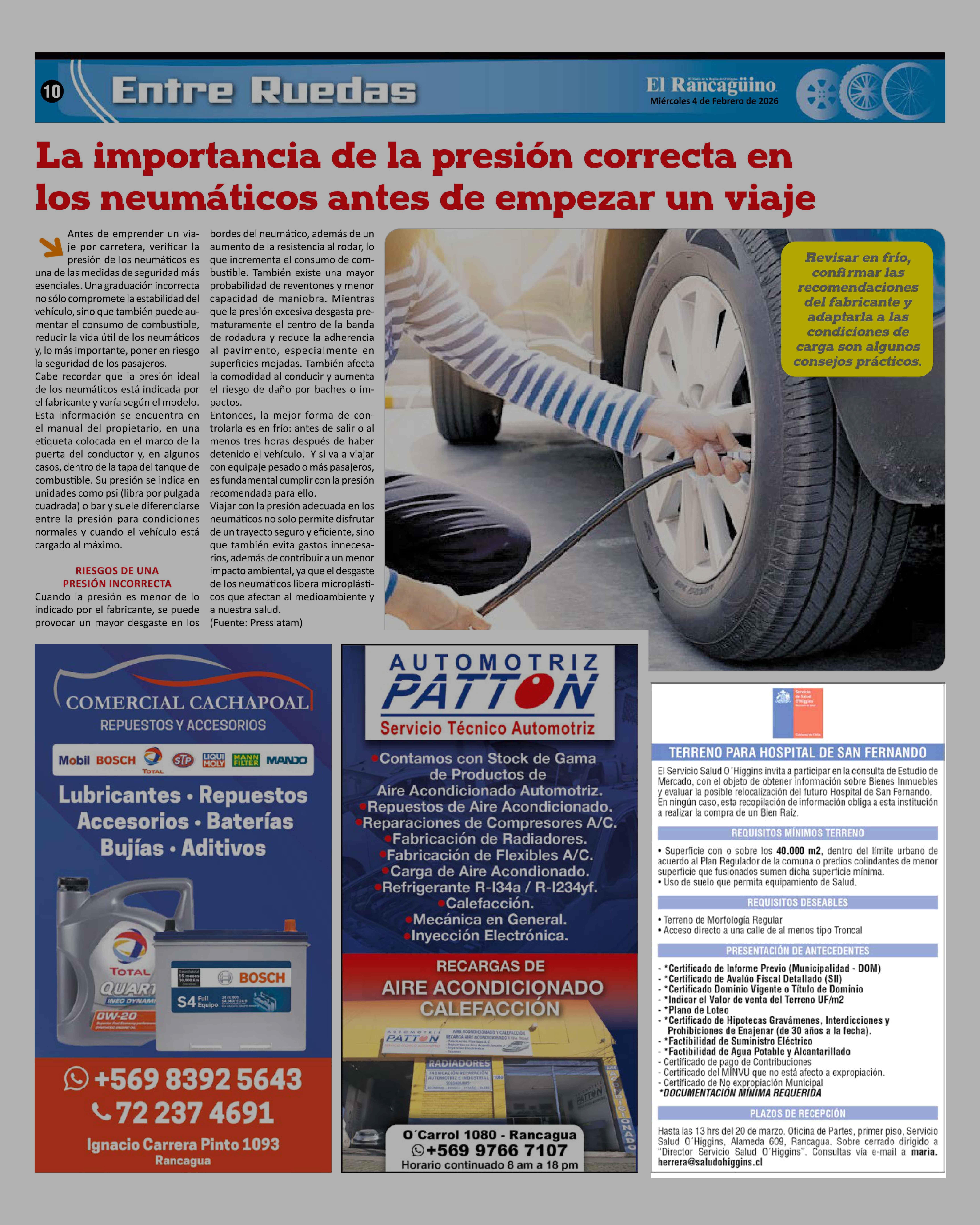 Aviso Licitaciones: TERRENO PARA HOSPITAL DE SAN FERNANDO 04-02-2026 El Rancagüino |