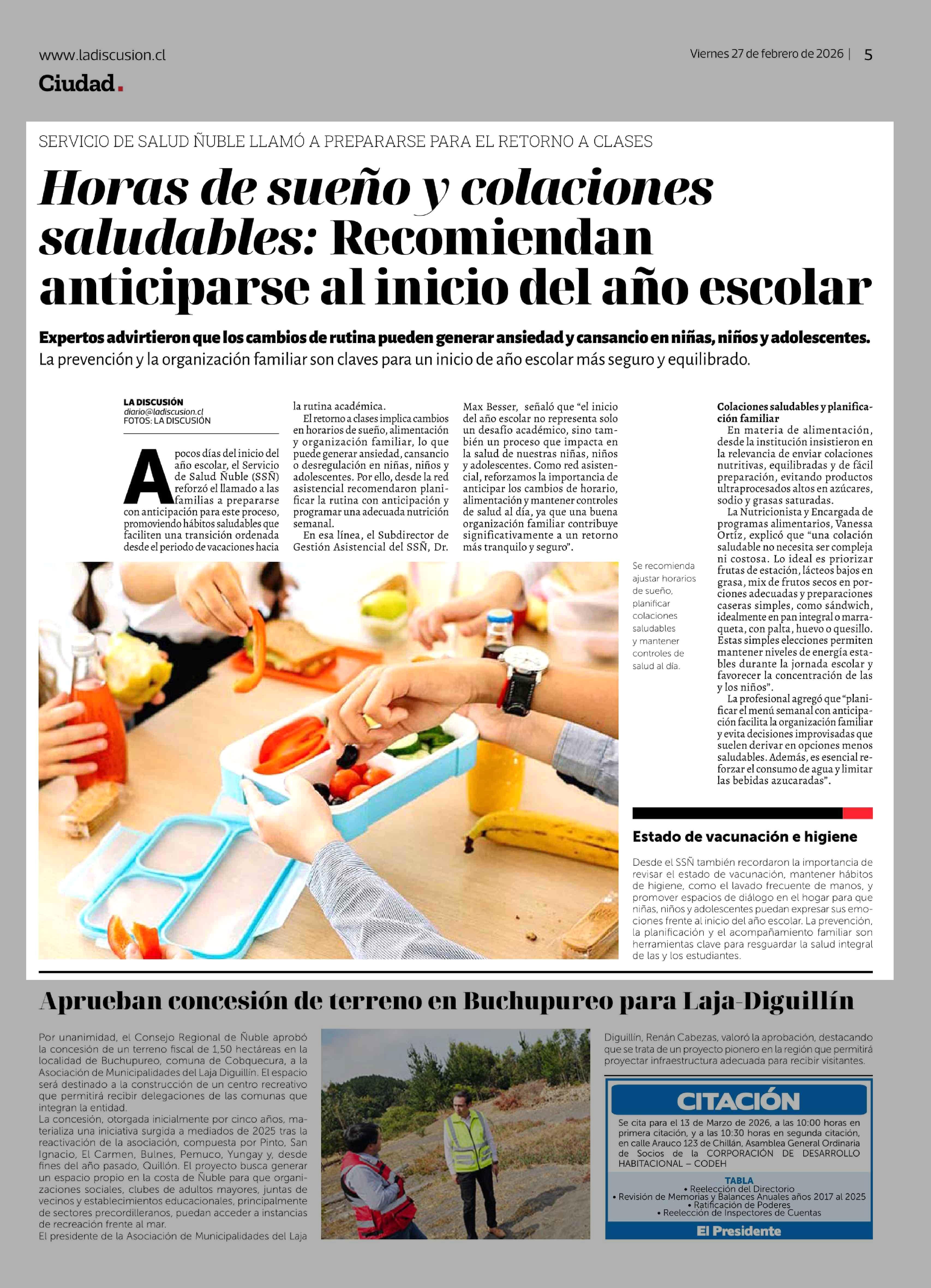 Fecha: 27-02-2026 Sector: Noticia general Región: Región del Ñuble